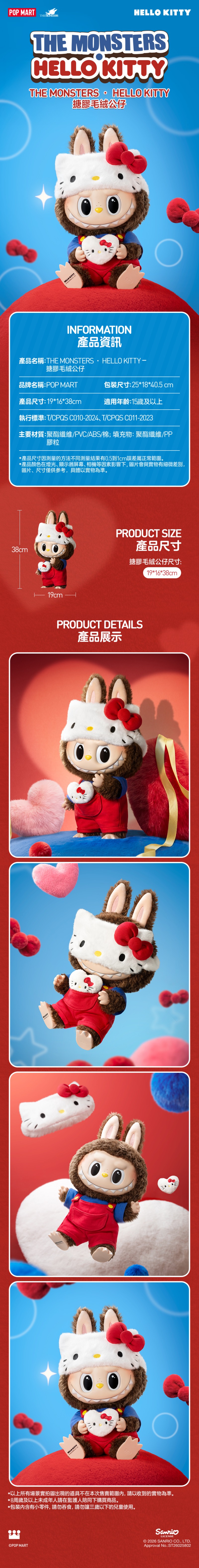 【POP MART 泡泡瑪特】THE MONSTERS × HELLO KITTY - 搪膠毛絨公仔-POP160