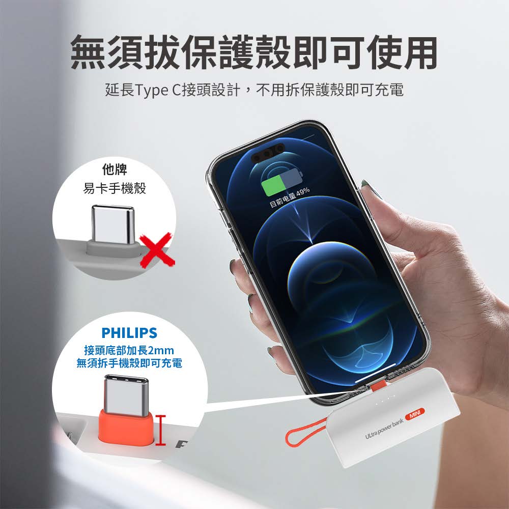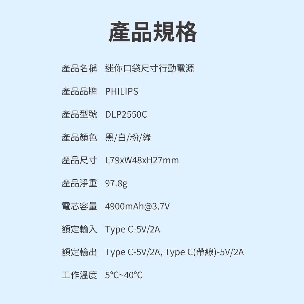 05【PHILIPS限定粉紫色】迷你口袋Type-C行動電源-JG003