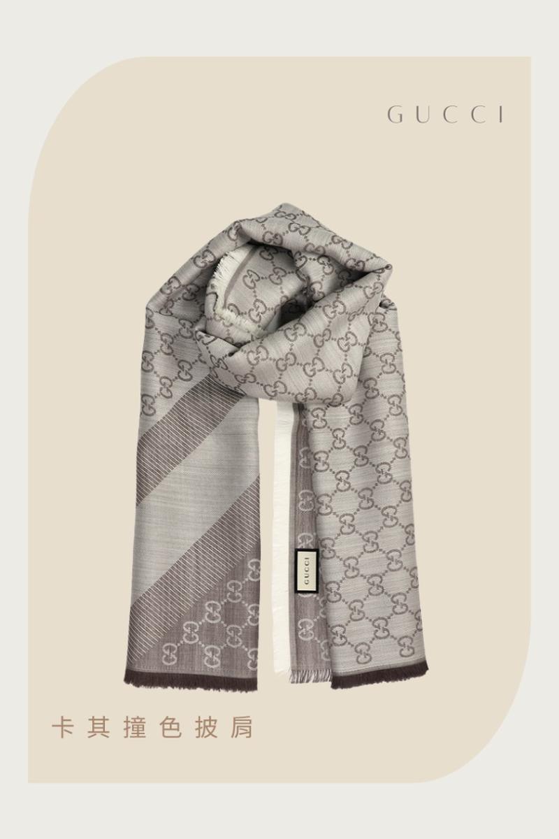 Gucci 卡其撞色披肩
