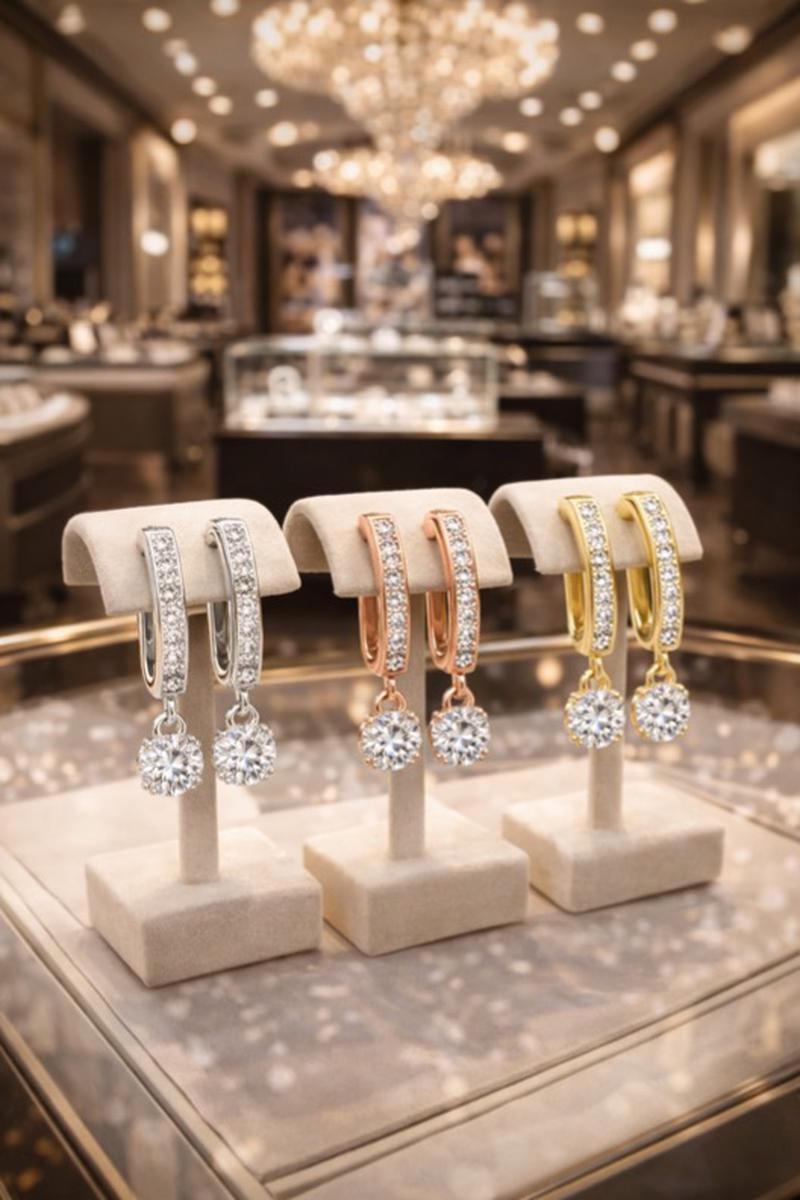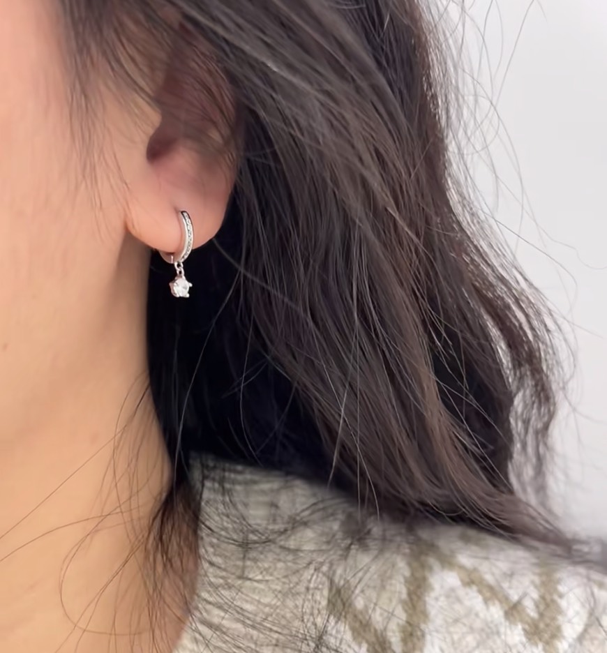 每副耳環鑲嵌 1 顆 6.3mm 主石(約 1CT)+9 顆精緻水晶,隨著動作自然閃耀,光澤迷人