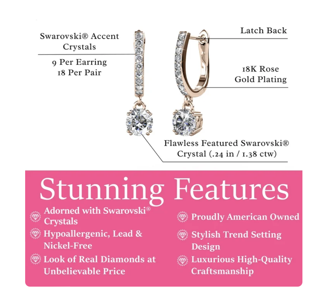 💎 ✨ 美國輕奢珠寶品牌 Cate & Chloe 施華洛世奇水晶垂墜耳環