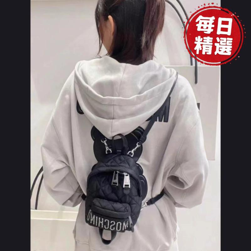 MOSCHINO 36.菱格縫線銀LOGO尼龍後背包/小/黑 全新商品