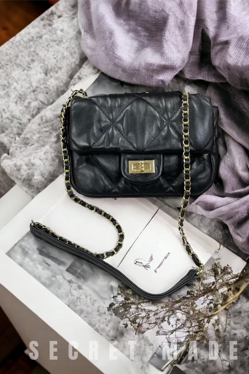 這款澎澎牛皮小香格紋沙發包,以柔軟的牛皮搭配經典菱格壓紋設計,呈現高級質感與時尚氣息。搭配精緻的金屬扣環與鏈條肩帶,散發優雅又俐落的氛圍,無論日常休閒或正式場合都能輕鬆駕馭。