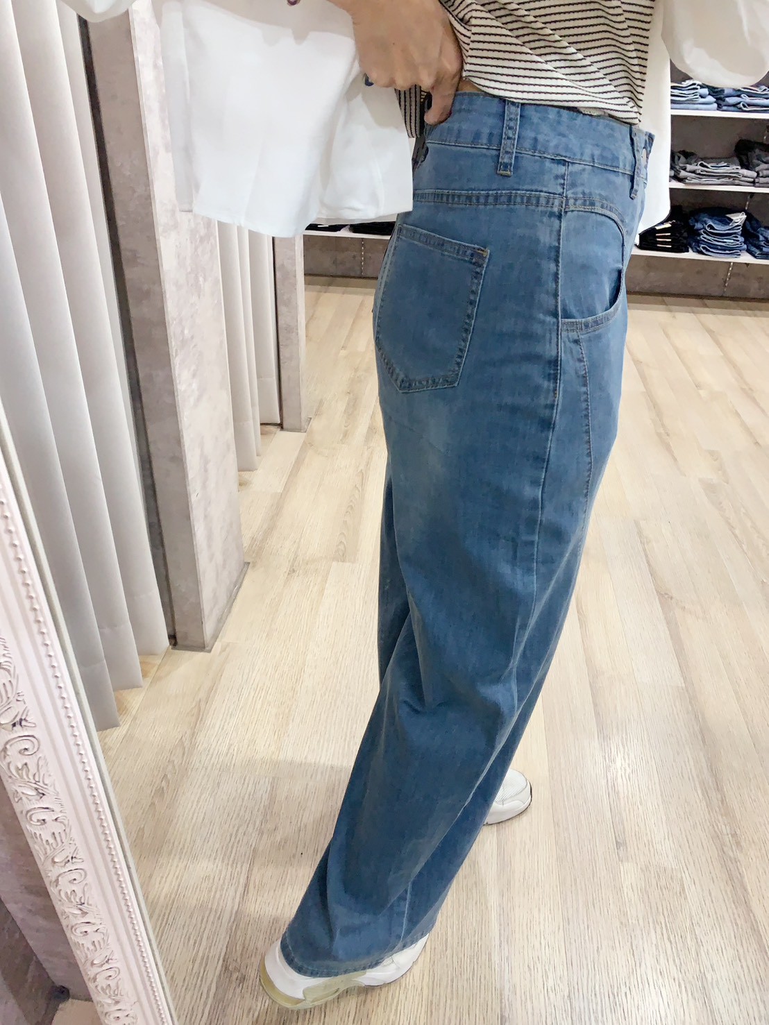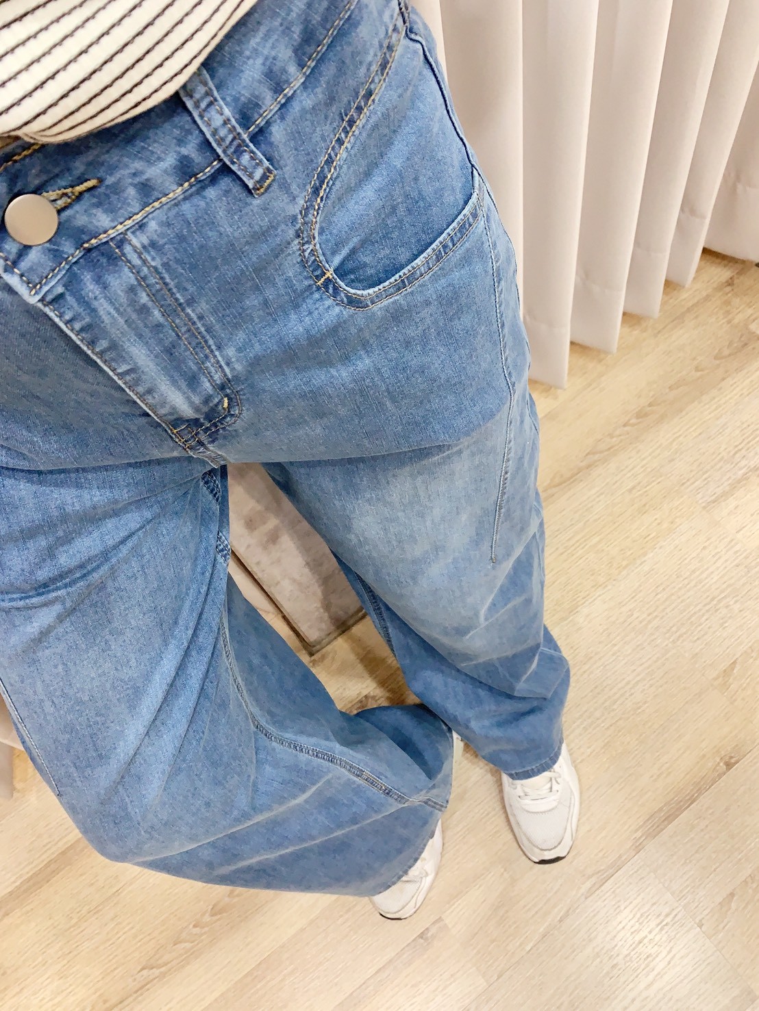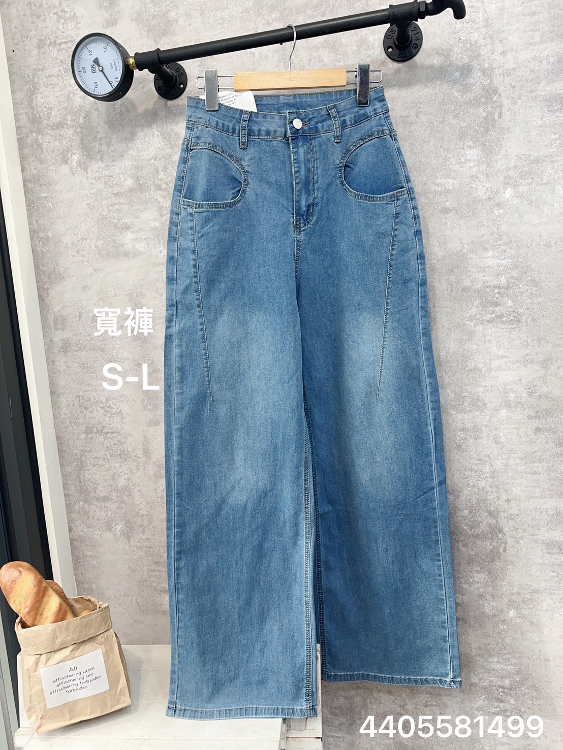 【3D立體剪裁✨ 復古水洗藍寬褲】 440558