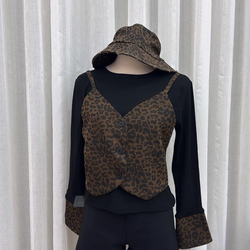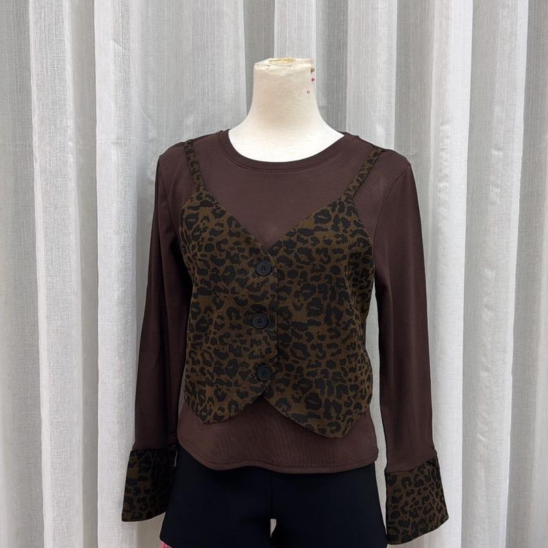 ZA032-拼接豹紋磨毛上衣(現+預)