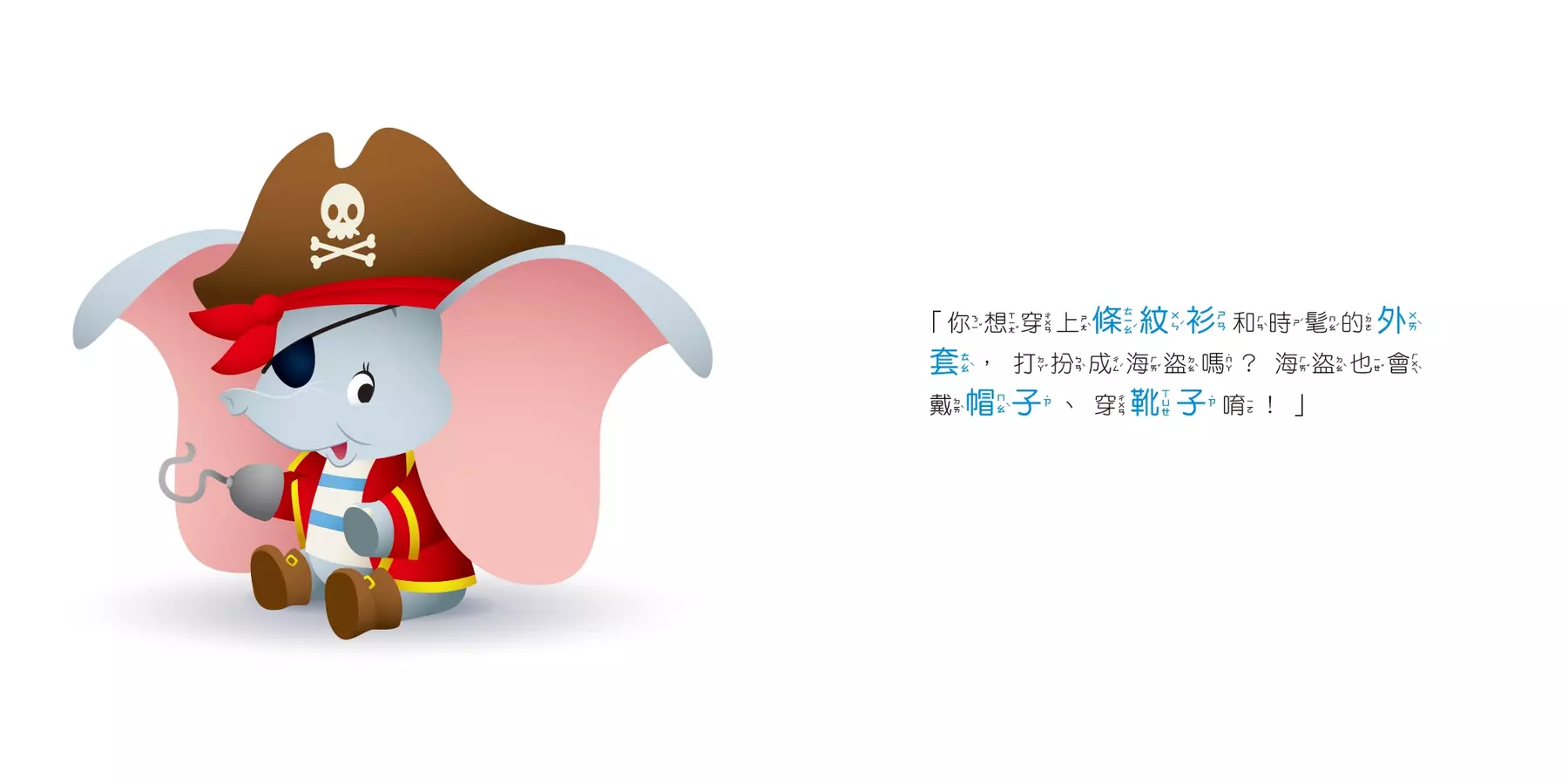 歡迎來到小小扮裝派對,小飛象呆寶打扮成了大家熟悉的角色:海盜、王子、消防員、牛仔、騎士、魔術師、小丑……仔細看看,每個角色的服裝都各有特色,讓人一眼就認得出來!小朋友能不能看出呆寶現在扮的是誰呢?