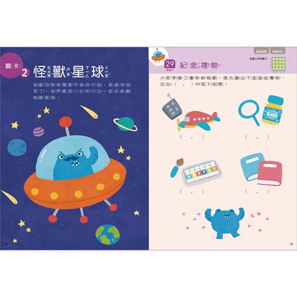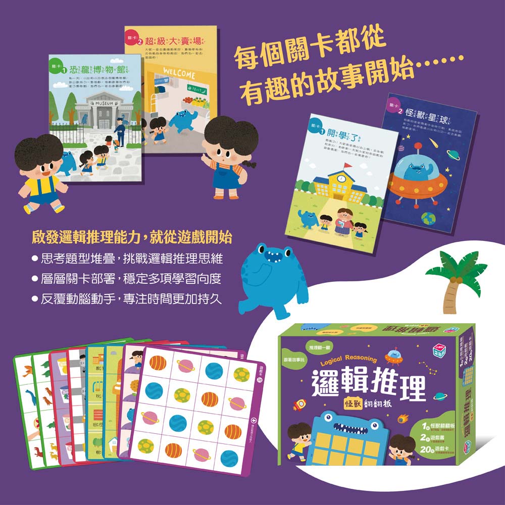 1組怪獸翻翻板+ 2本遊戲書 + 55個邏輯推理遊戲