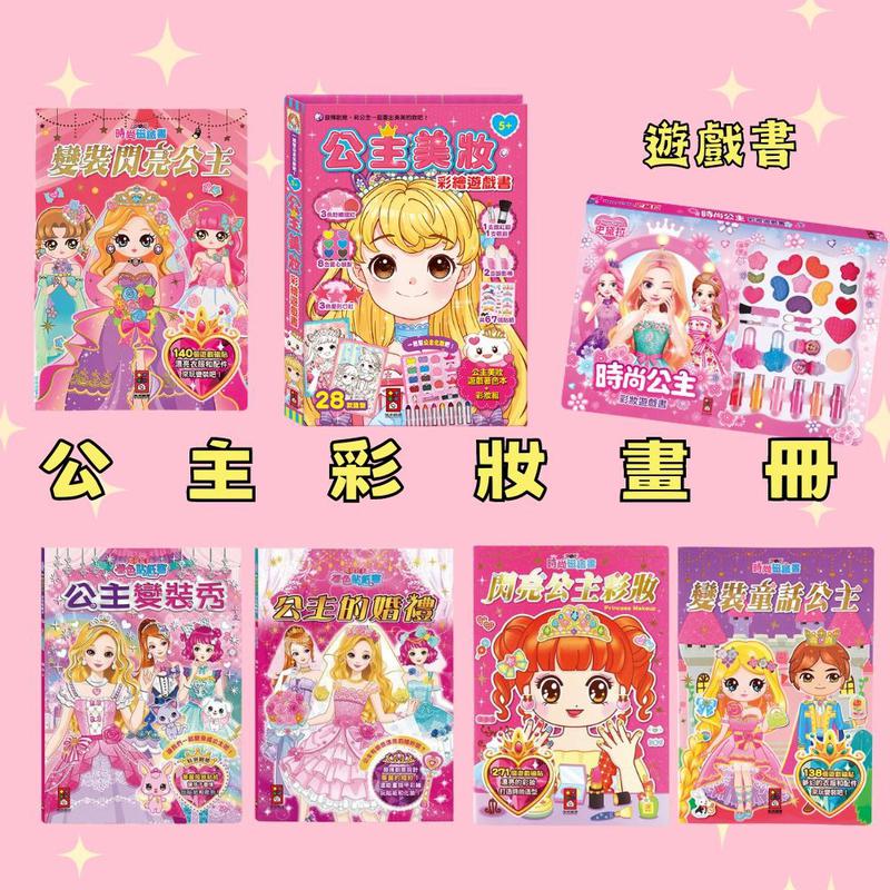 另有彩繪遊戲書,可以幫書中的公主們著色,並且嘗試幫公主畫上美麗的妝容,並且配合貼紙,可以貼上美瞳、美甲、髮夾等裝飾,讓孩子盡情發揮創意,揮灑藝術美感,打造屬於自己的風 格,同時在著色過程中也能促進手眼協調,強化肌肉發展,滿足孩子們對於化妝的好奇心。