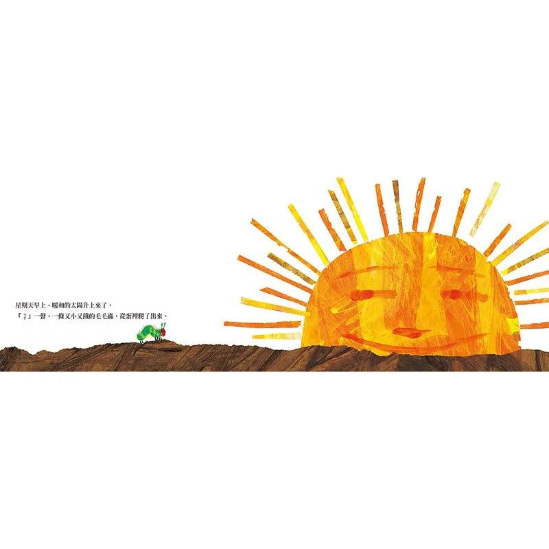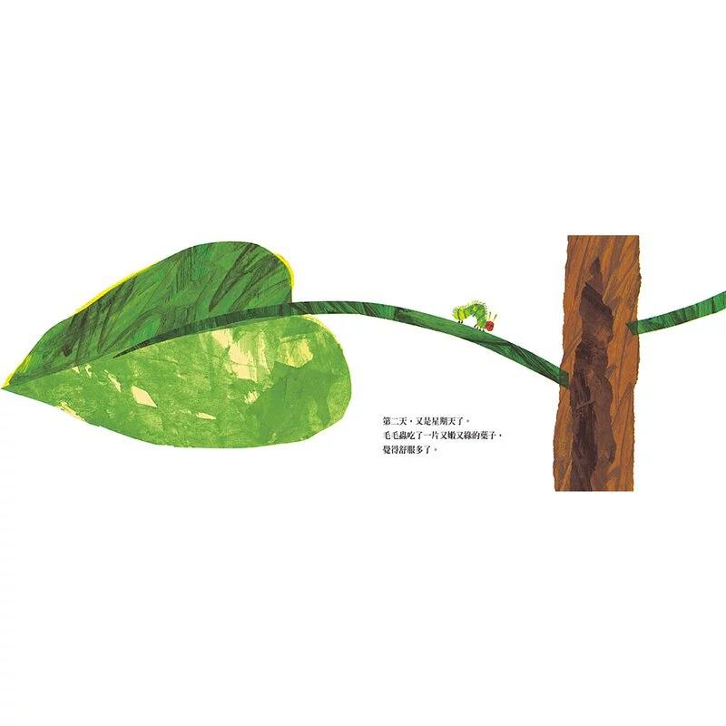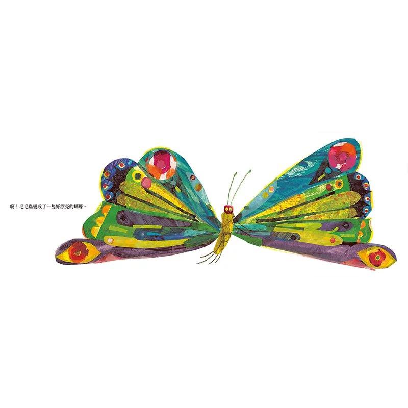艾瑞.卡爾運用獨特的拼貼技巧,讓色彩不單單只是鮮豔,更能讓孩子看到大自然多層次的美,如毛毛蟲身上的綠,絕對不是坊間單一層次的綠所能比擬的。除此之外,艾瑞.卡爾擅長在豐富的童趣中,展現對生命的讚嘆,當毛毛蟲一路吃啊吃、最後蛻變成美麗的蝴蝶時,生命的可貴多麼令人喜悅。