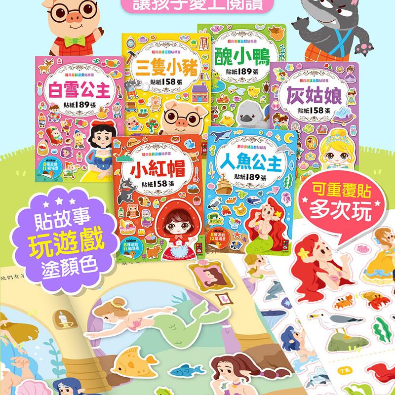 (風車圖書) - 經典童話遊戲貼紙書 醜小鴨/三隻小豬/小紅帽/灰姑娘/人魚公主/白雪公主
