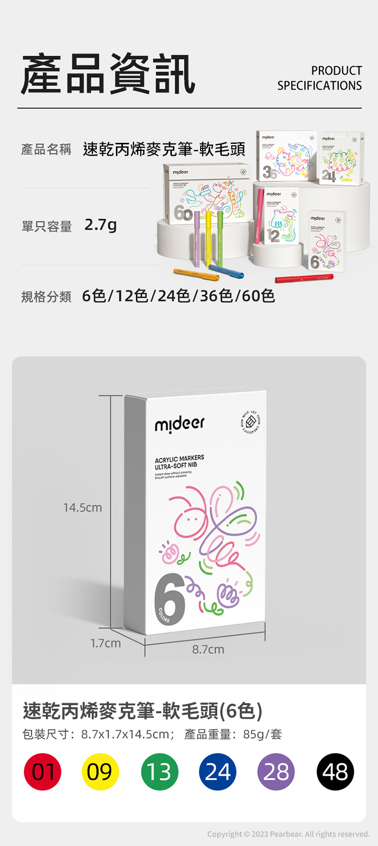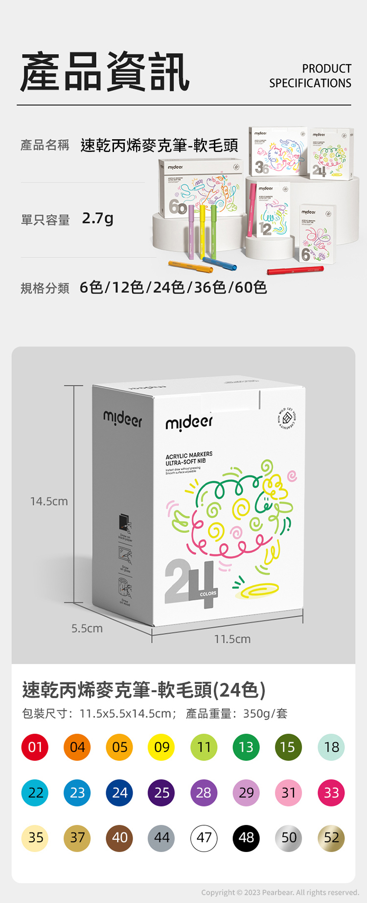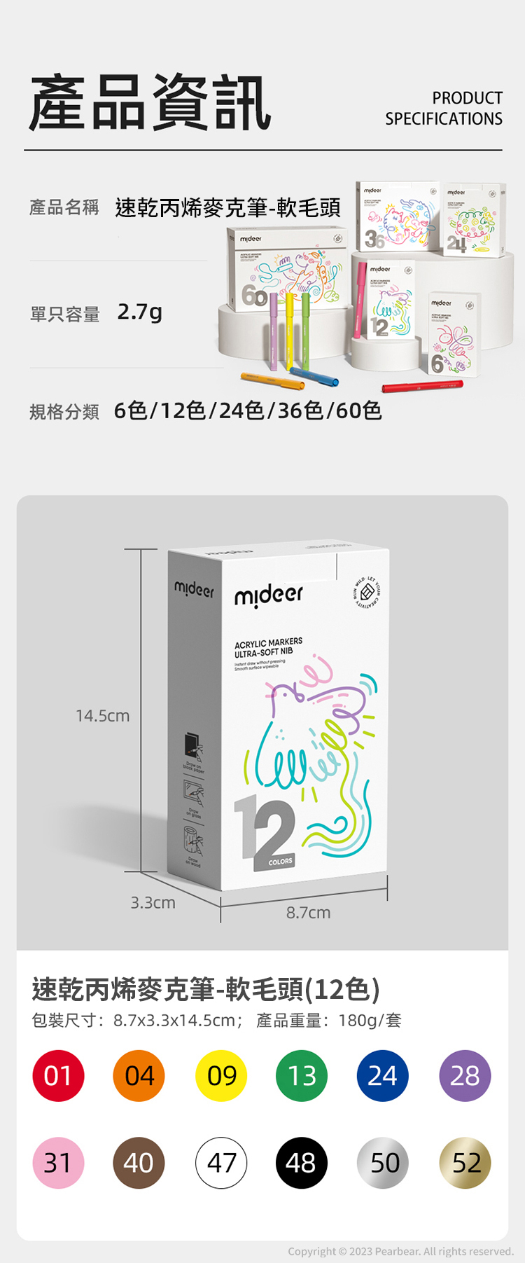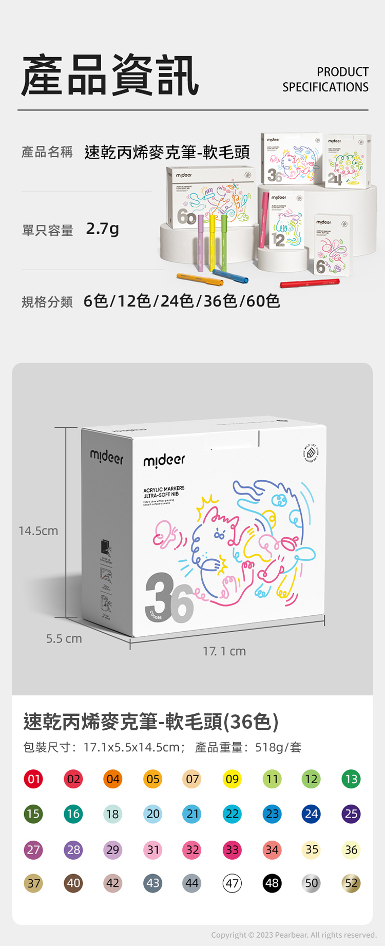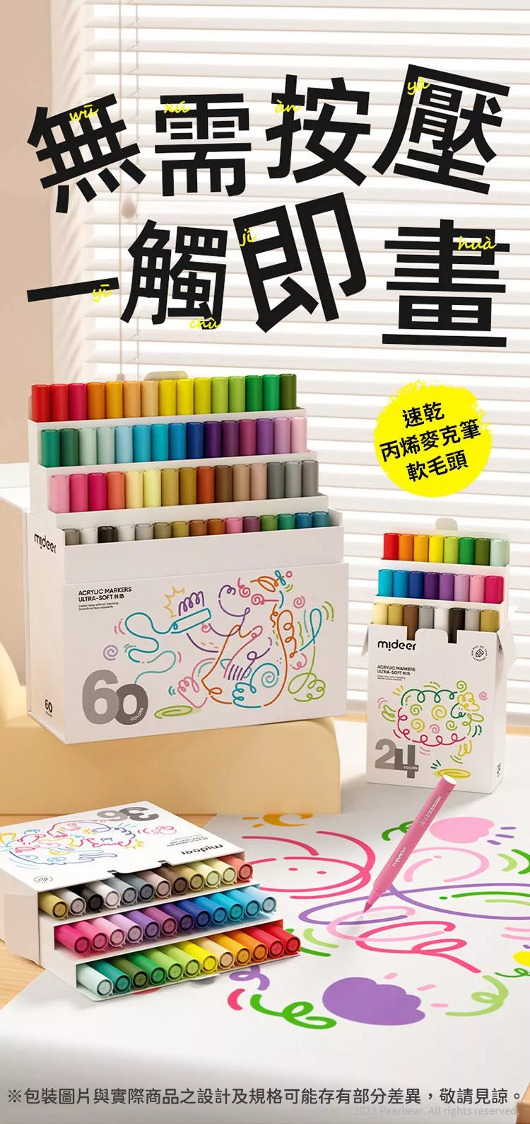 現貨MIDEER速乾丙烯麥克筆-軟毛頭(6色/12色/24色/36色)