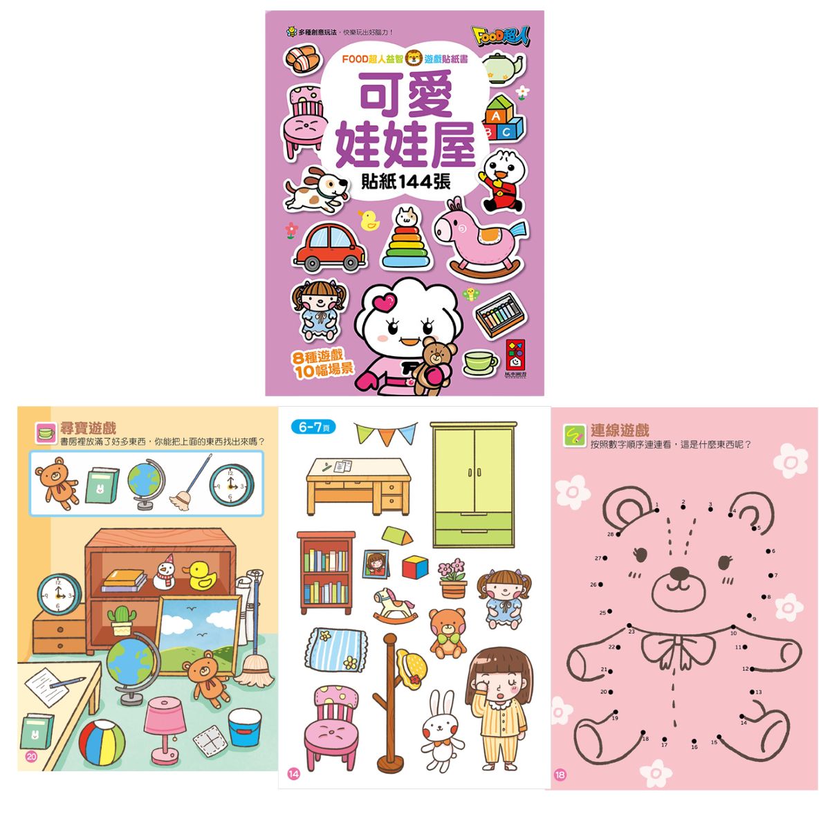 除了貼紙遊戲外,書中還包含著色、畫畫、連連看、走迷宮等小遊戲,幫助孩子提升專注力和智力。