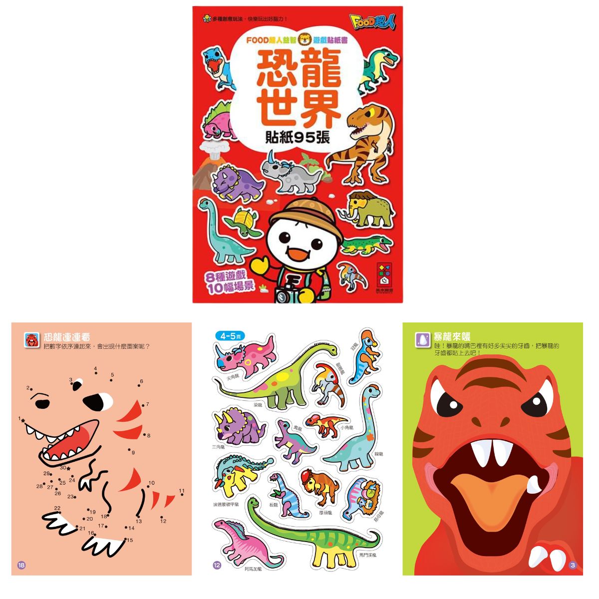 書中共有200張寫實與插畫風格的貼紙,涵蓋多種情境:草原、海洋、天空、恐龍世界等場景,充分發揮孩子的創意與想像力。