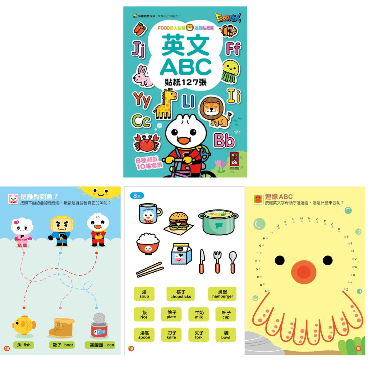 (風車) - FOOD超人益智遊戲貼紙書系列: 超級市場/恐龍世界/交通工具/可愛娃娃屋/英文ABC/數字123/公主變裝秀 /2歲3歲IQ EQ/醜小鴨/白雪公主/小紅帽/三隻小豬/灰姑娘/人魚公主