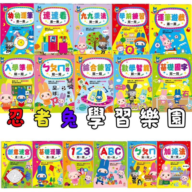 (幼福) - 忍者兔學習樂園 基礎運筆遊戲畫一畫123ABC加減法連連看九九乘法ㄅㄆㄇ拼音入學準備創意迷宮學前練習綜合練習