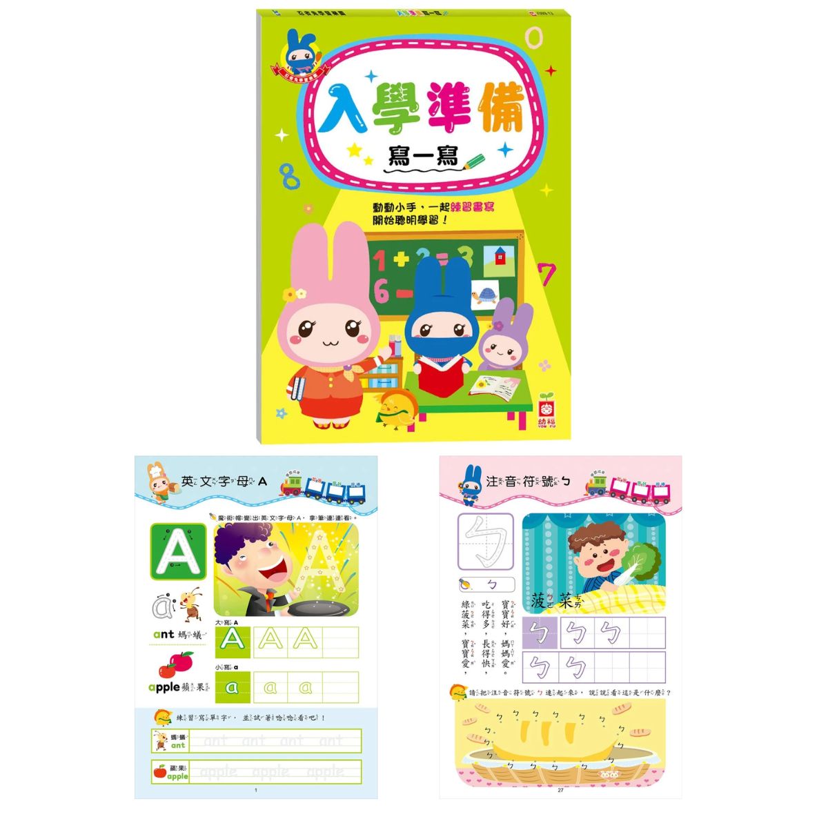 ★讓孩子跟著ABC、ㄅㄆㄇ、123的筆順練習寫一 寫,學習正確的筆劃。
