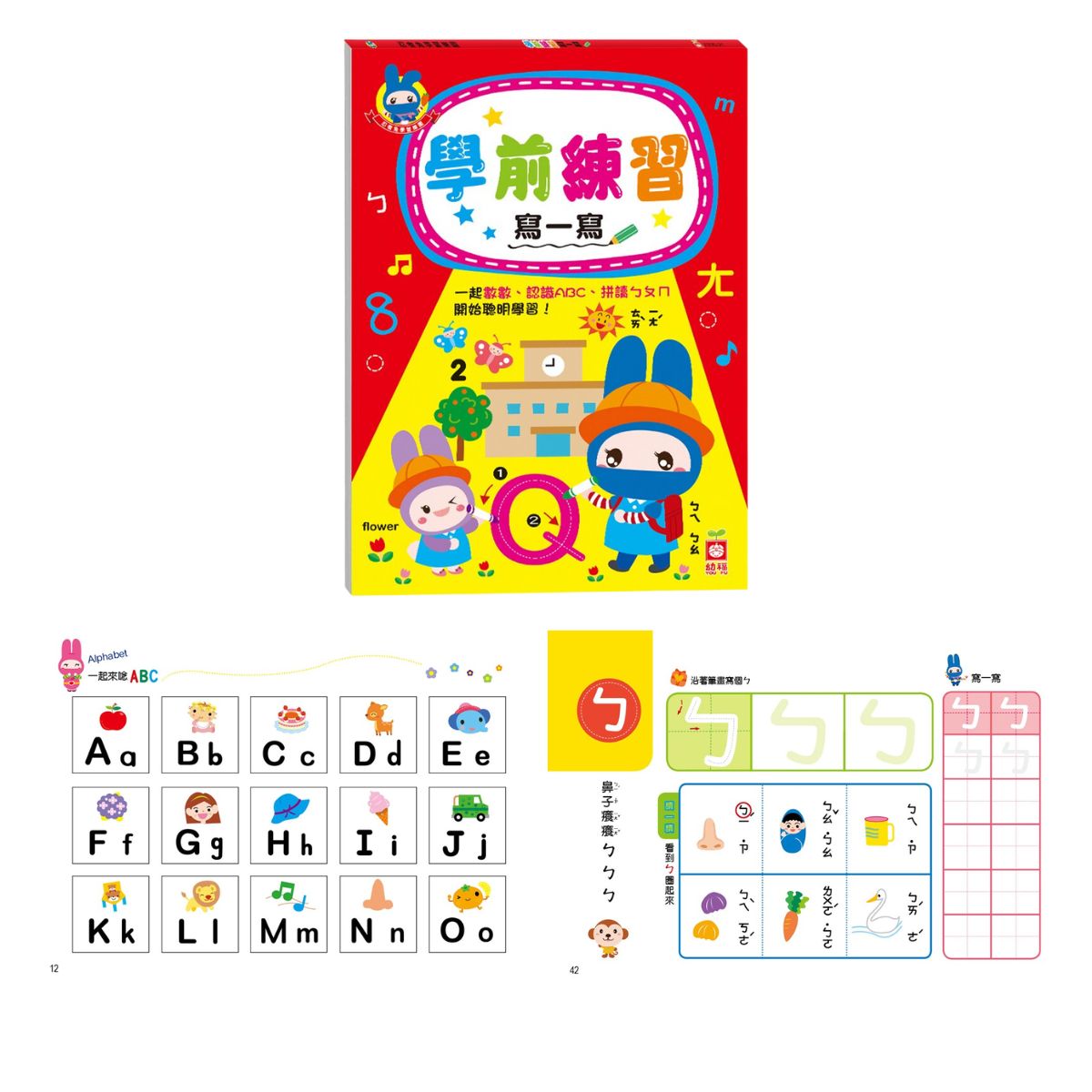 ★可愛的忍者兔陪伴孩子學習注音符號、英文單字、數字點數,促進認知樂趣。