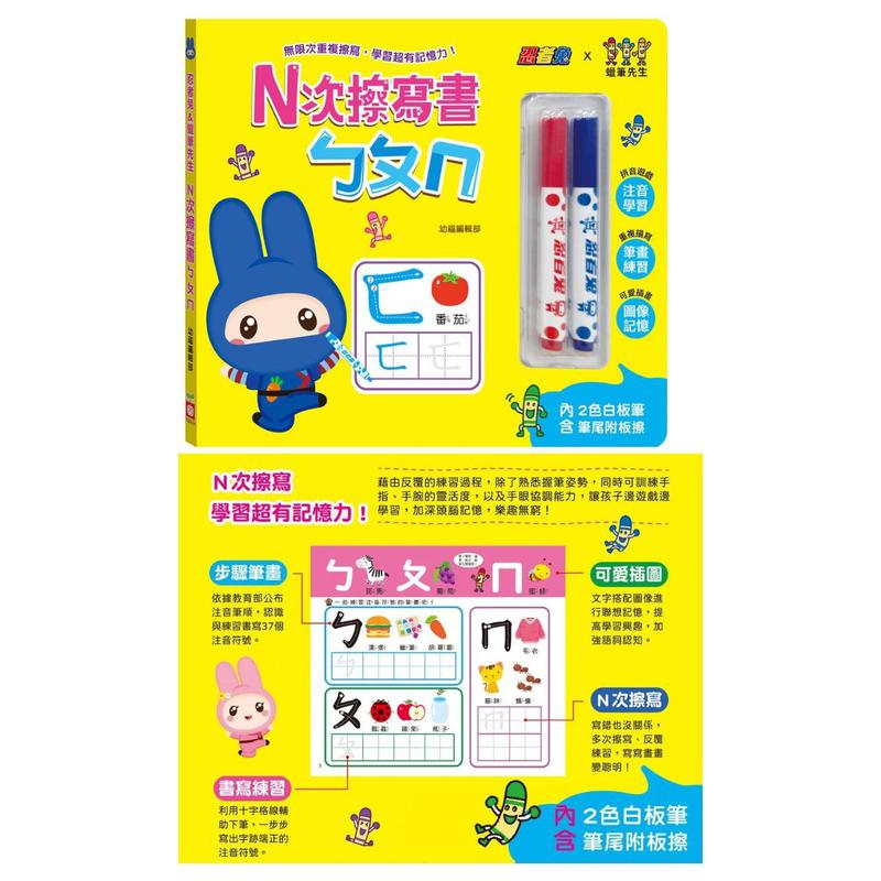 | 者兔&蠟筆先生:N次擦寫書ㄅㄆㄇ 贈「2色白板筆,筆尾附板擦」,厚紙設計好翻好寫 |