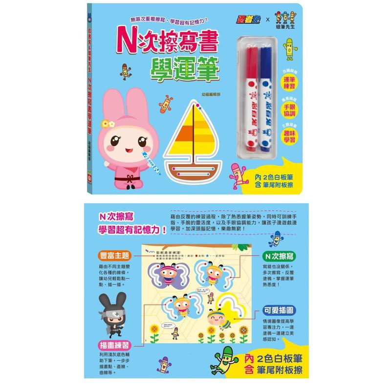 | 者兔&蠟筆先生:N次擦寫書學運筆 贈「2色白板筆,筆尾附板擦」,厚紙設計好翻好寫 |