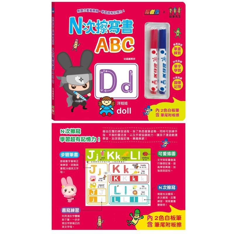 | 者兔&蠟筆先生:N次擦寫書ABC 贈「2色白板筆,筆尾附板擦」,厚紙設計好翻好寫 |