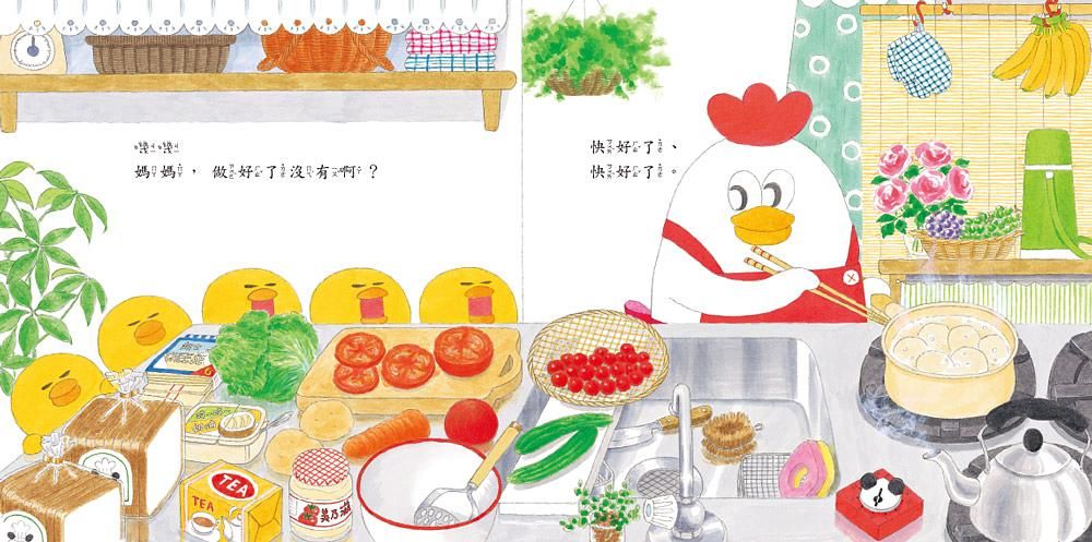 活潑好動的超人氣小雞一家總是有著許多歡樂又有趣的故事,從逛超市、過生日,到歡樂假期的遊樂園、耶誕節及露營,或是到外婆家玩,都用最貼近生活的內容,帶來滿滿的幸福與感動,陪伴孩子一起成長,是最幸福的寶寶書!