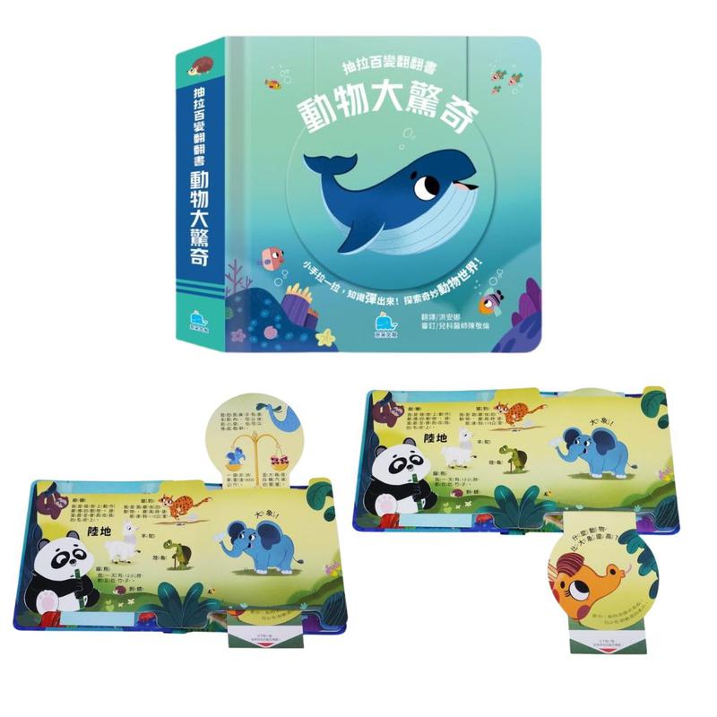 獨創的抽拉機關,帶給孩子獨一無二的驚喜──先思考關於動物的知識提問,再輕輕往下拉,新的頁面就會彈出來揭曉答案,幫助孩子認識動物的外貌、習性、特徵等知識。這種全新的互動式閱讀,不僅讓孩子更專注,還能培養探索精神,讓學習變得更加有趣!
