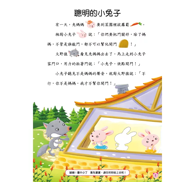 4.故事內容精采有趣,幼兒貼完貼紙後與父母輪流說故事,增加所學字彙、提升表達能力。