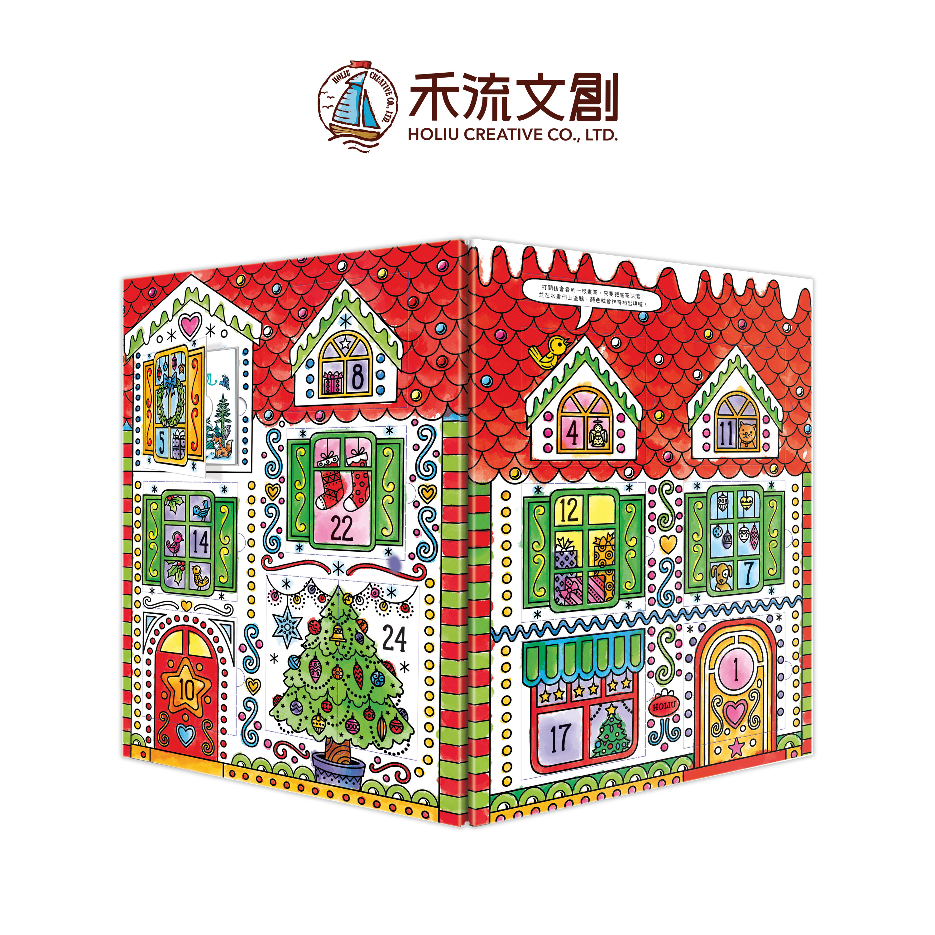 每一天都有一本好玩、有趣的水畫冊,不只能閱讀有關聖誕節的小故事,還能使用沾濕的畫筆,塗在黑白色的畫頁上,顏色就會神奇地出現囉!