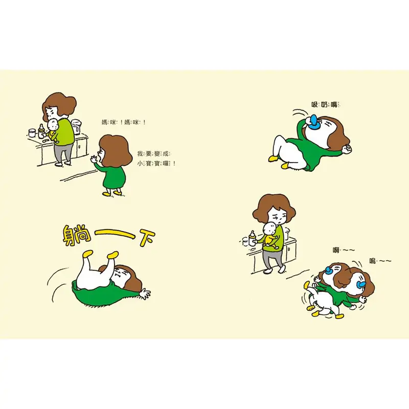決定了!媽媽也要變回小寶寶!(咚~躺下!)