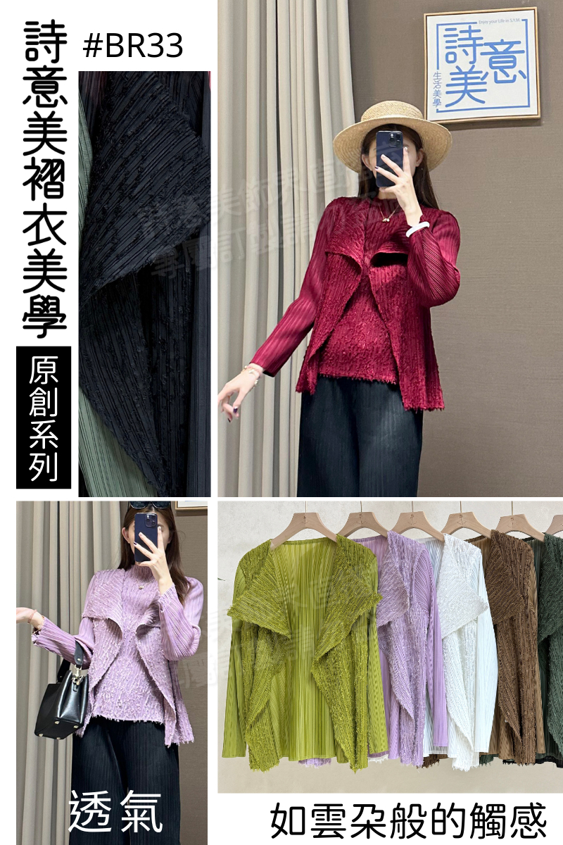 商城- #BR33 浮雕壓花翻領褶外套