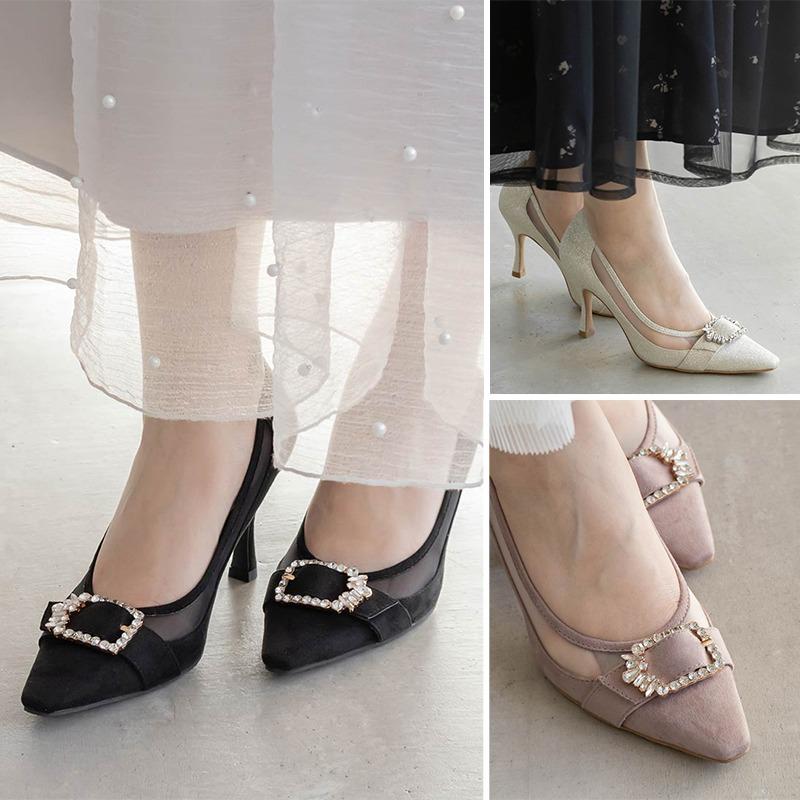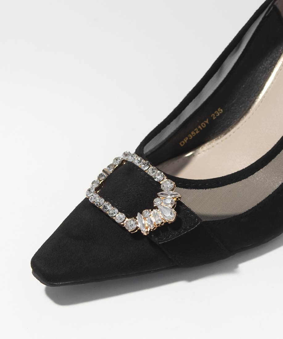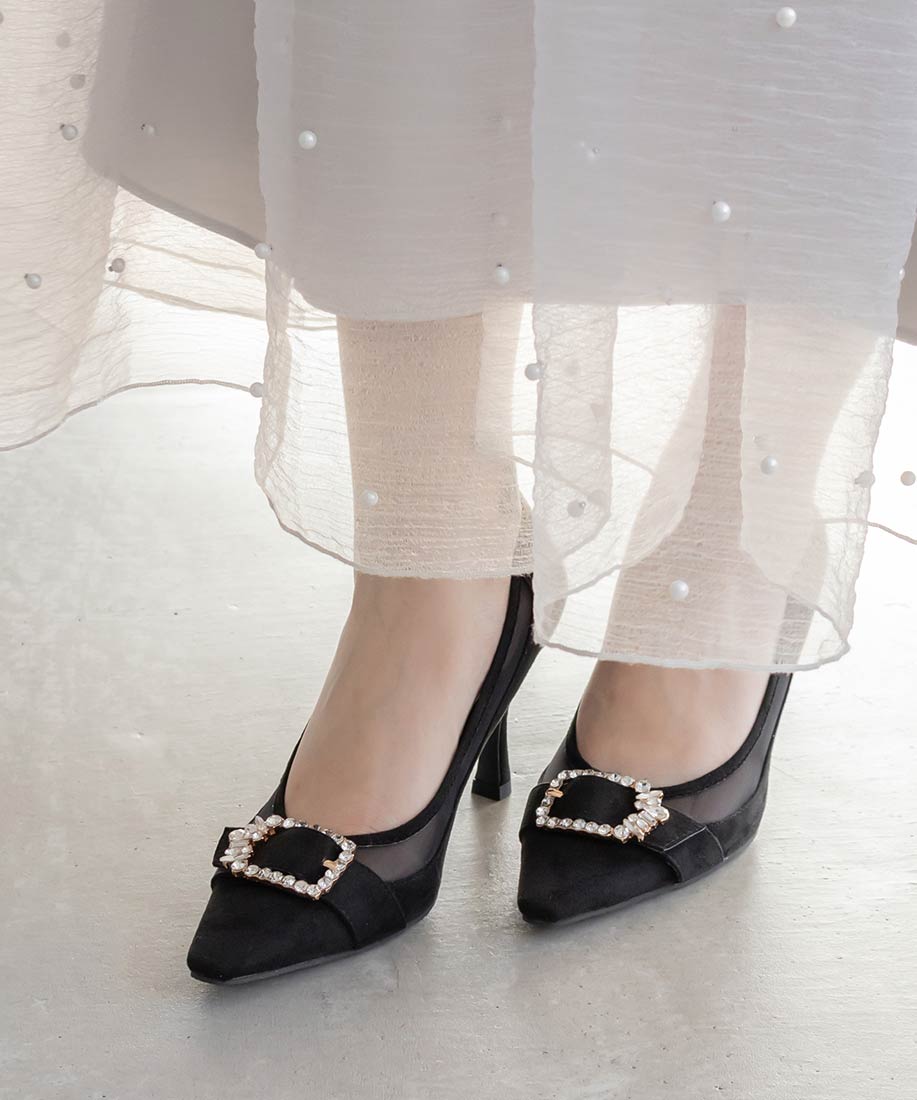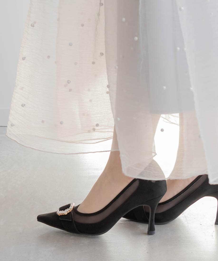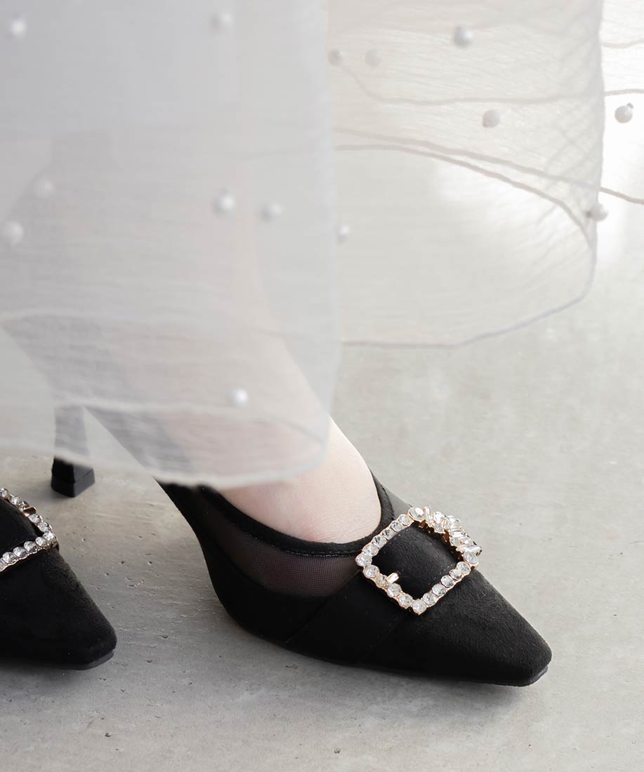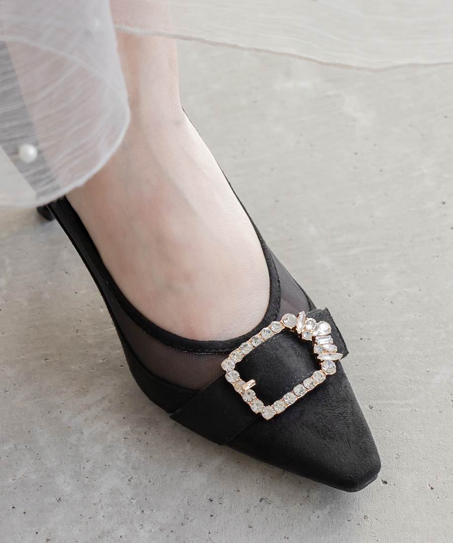 RANDA 華麗氛圍側邊網紗拼接鑽飾釦高跟鞋