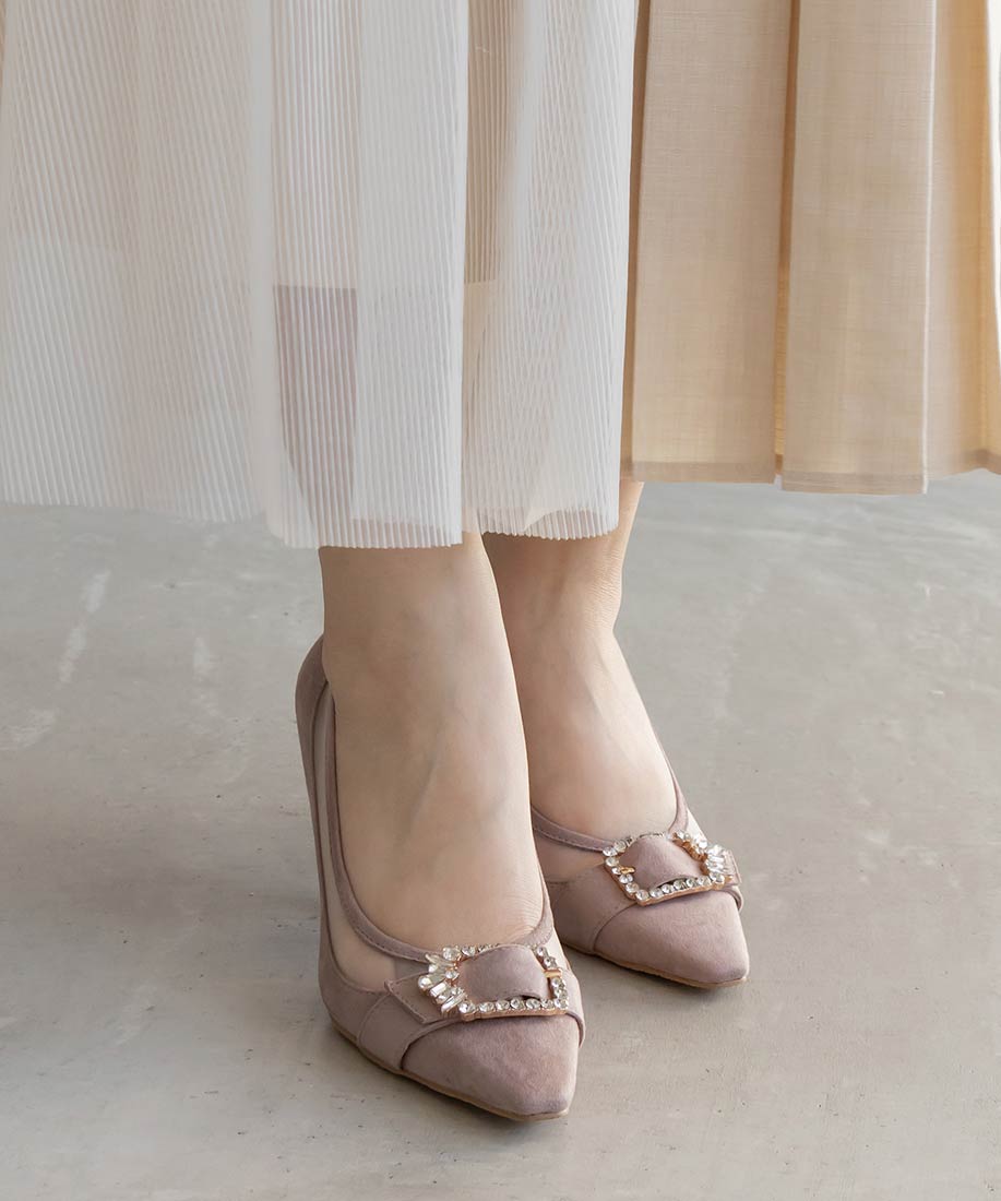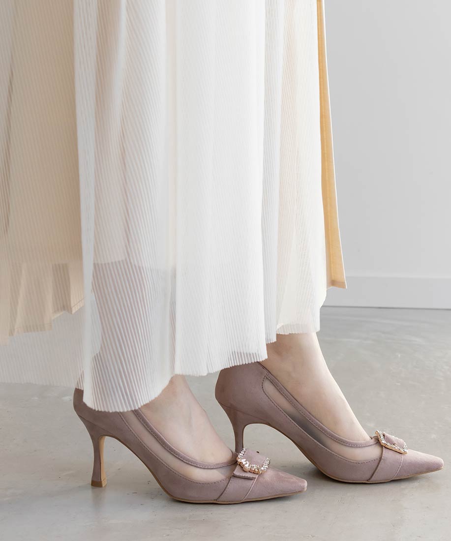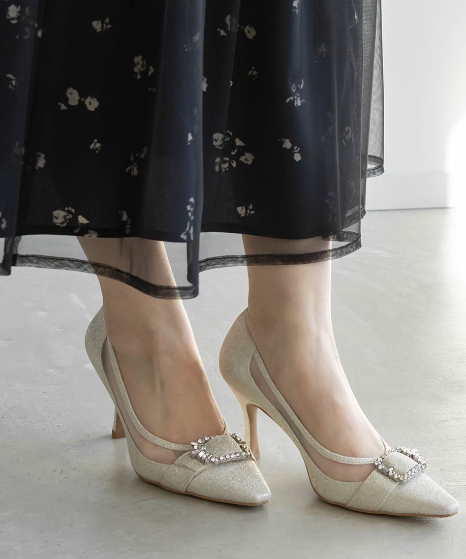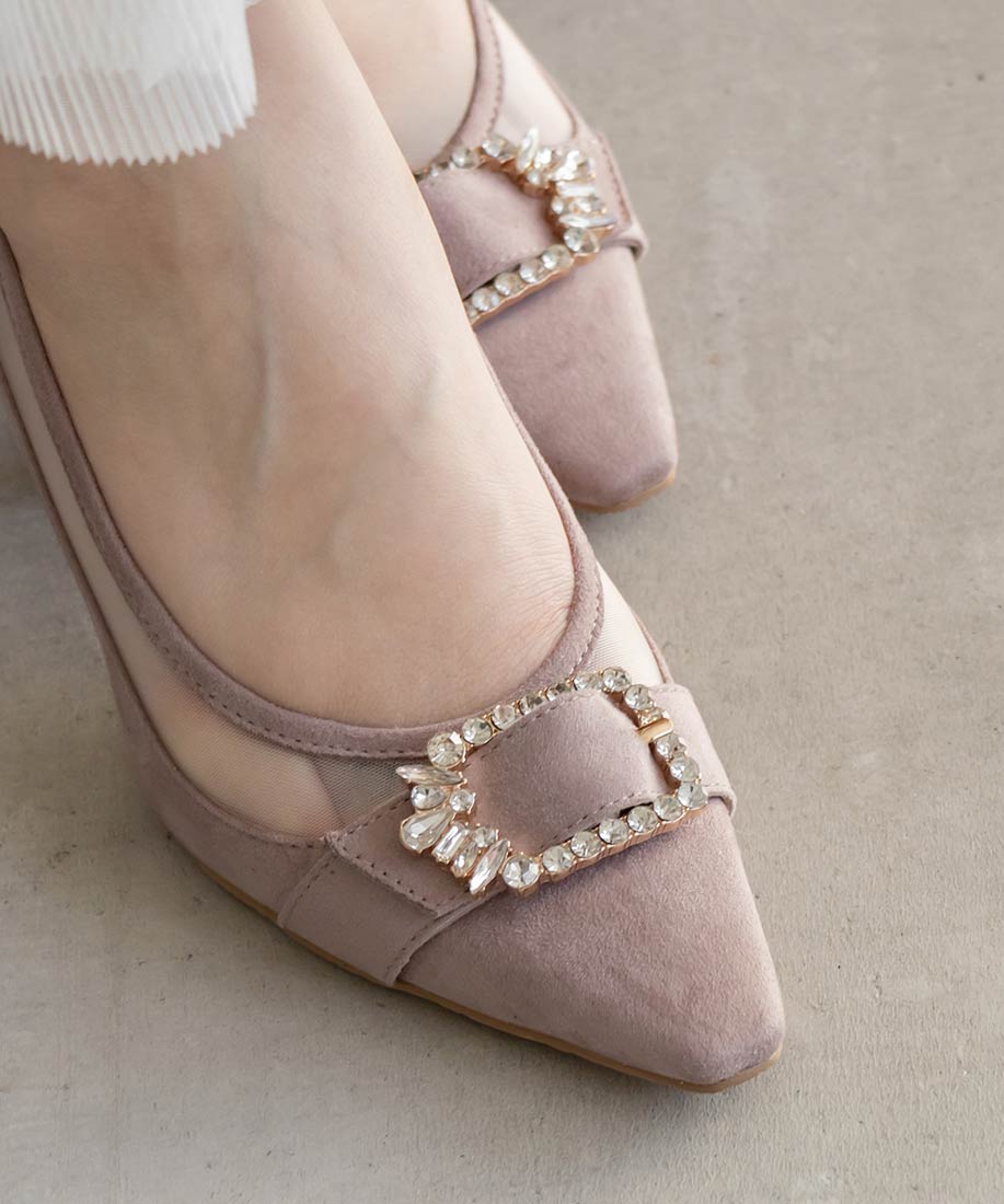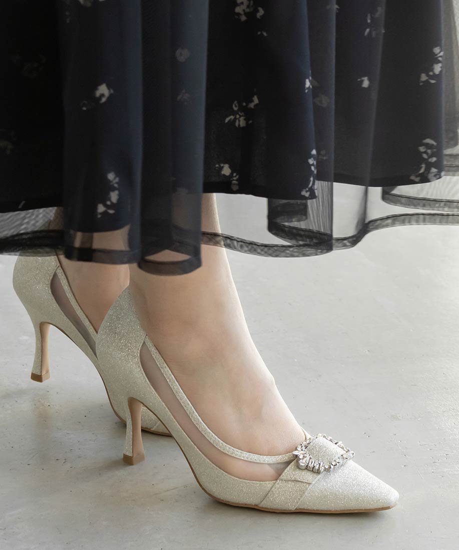 RANDA 華麗氛圍側邊網紗拼接鑽飾釦高跟鞋