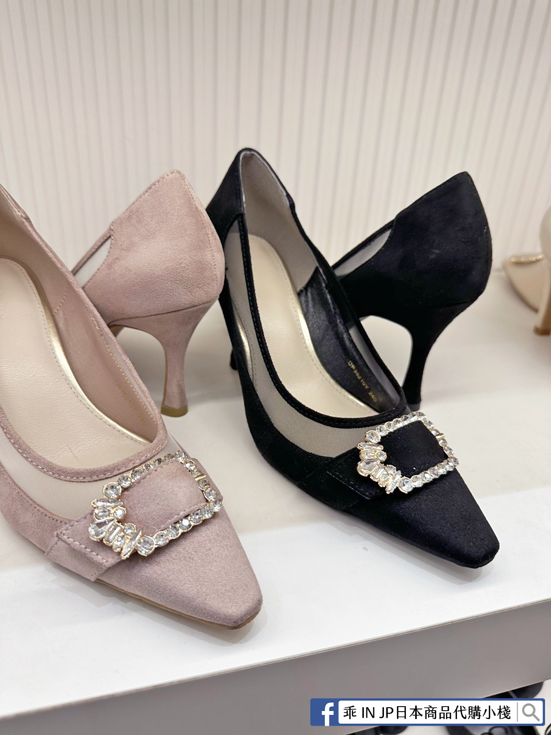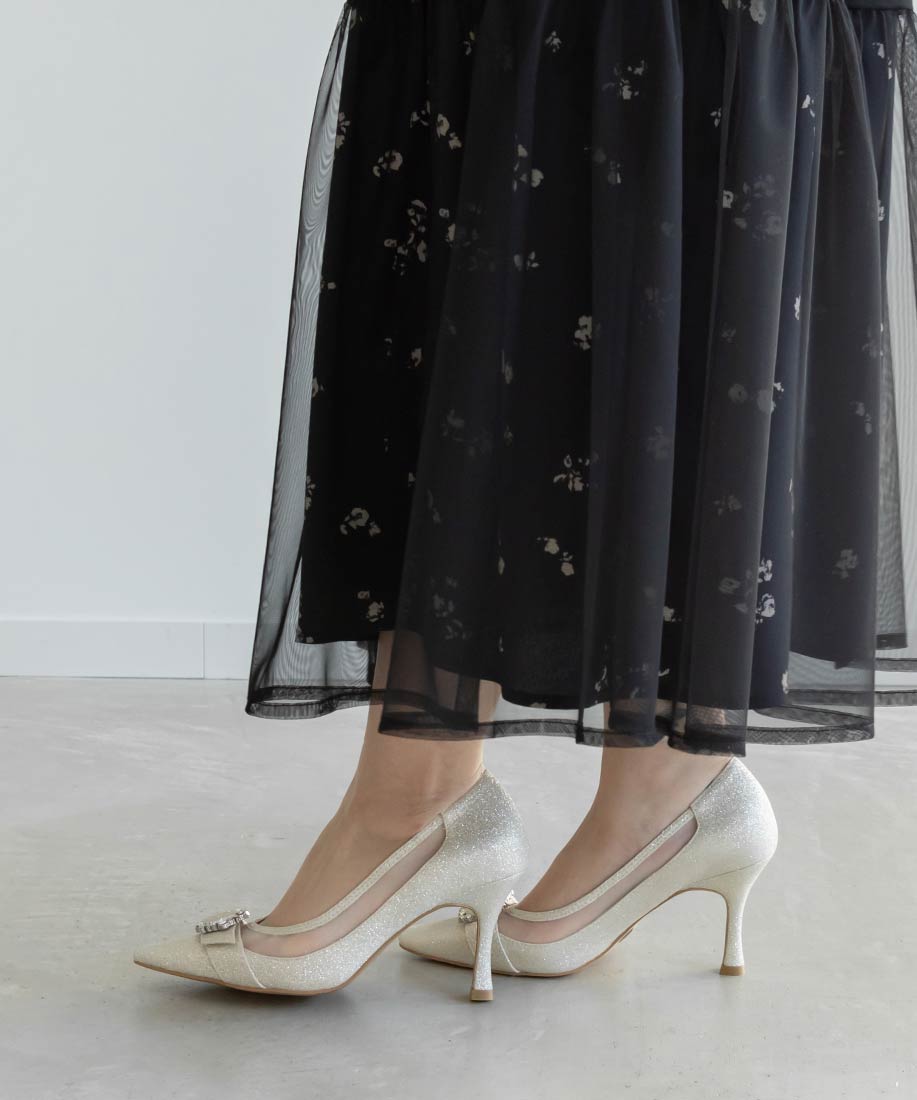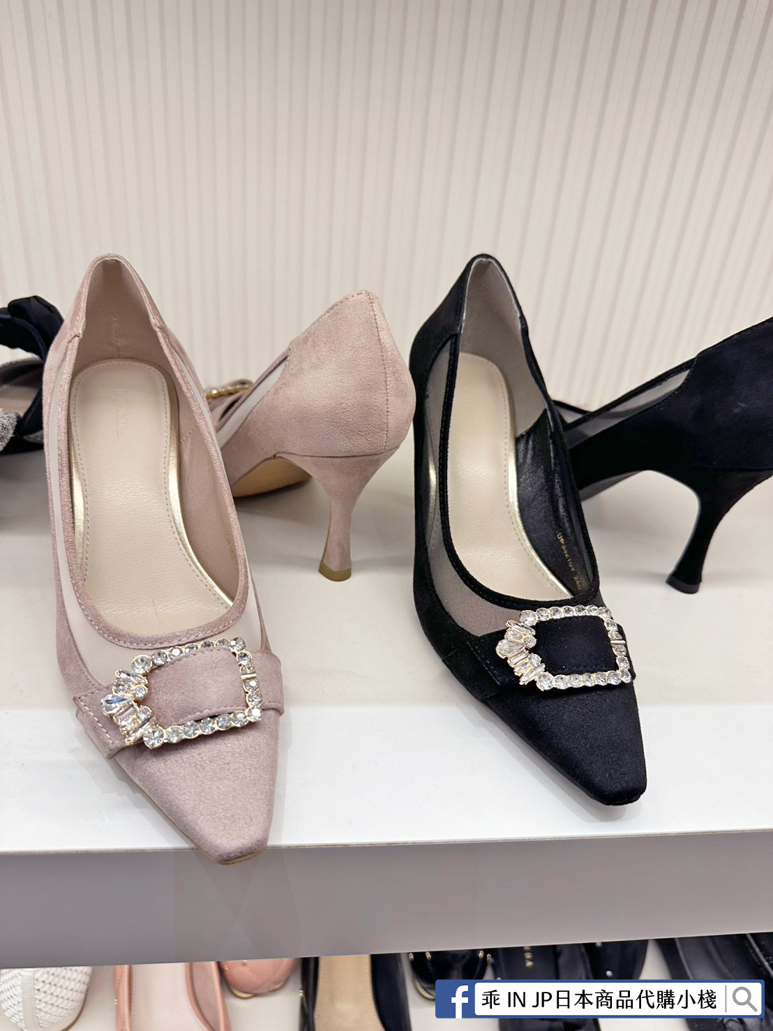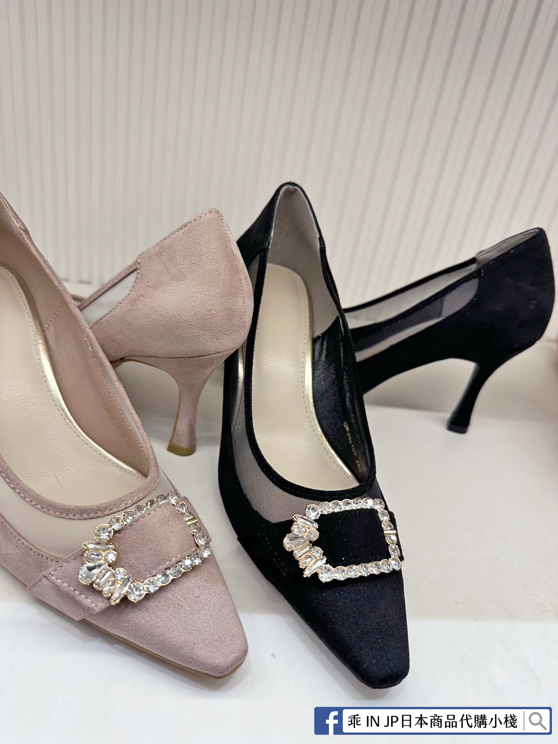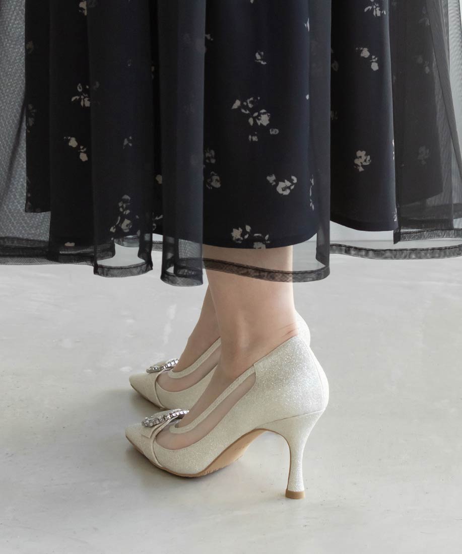 RANDA 華麗氛圍側邊網紗拼接鑽飾釦高跟鞋