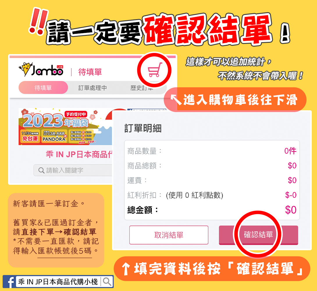 ❶在商城選購後,請務必到購物車頁面下方按『確認結單』