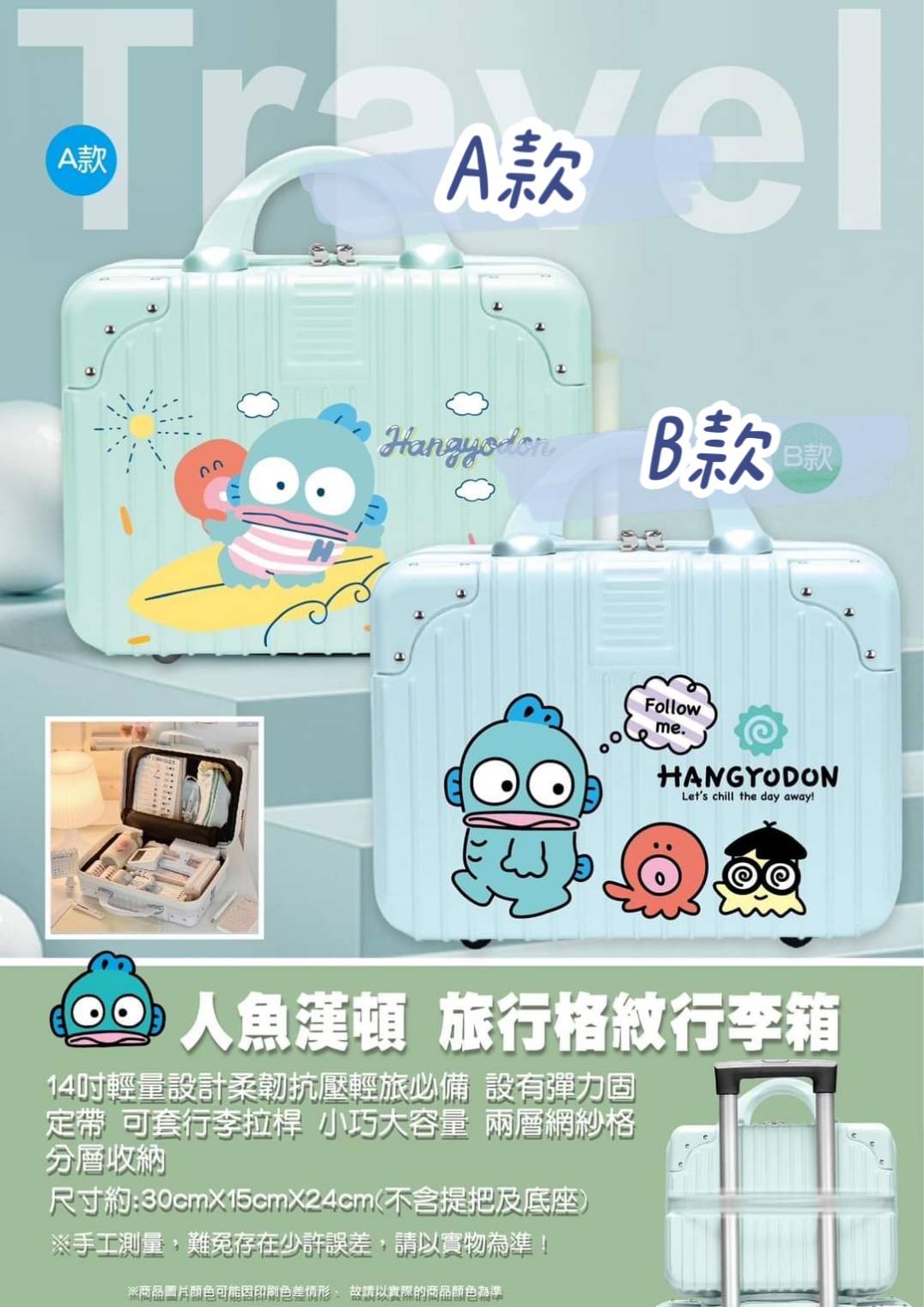 (正版授權) 醜魚漢頓隨身行李箱-14吋
