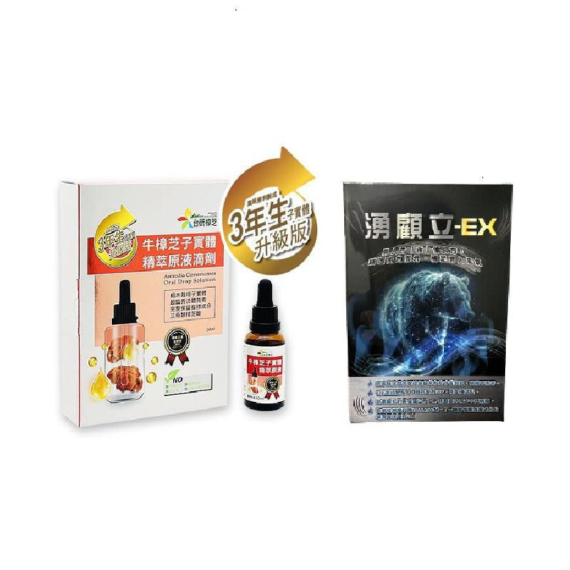 888 1026 09-(4盒)台研樟芝 牛樟芝子實體高倍精萃原液滴劑(30ml/罐)(效期2028/06)*4+湧顧立EX膠囊 (30顆/盒)*2
