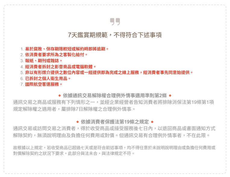 國際標準誤差範圍±2~3公分作為國際驗貨標準的可接受誤差範圍,不受理國際瑕疵以外各式理由要求退換貨。