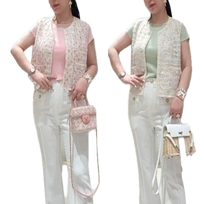 <現貨> MIU2287-超重工特種紗亮片花朵香風背心-粉/米【F胸48~55長51】線上2980 超殺福利價2080