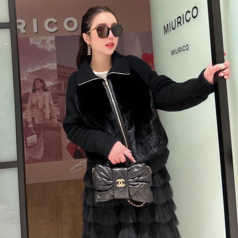 預購 MIU2713-真貂毛拼羊絨拼鵝絨外套-黑/白/杏-F/L/XL【F落肩胸51長52】原價29800 商城25900 線上25800