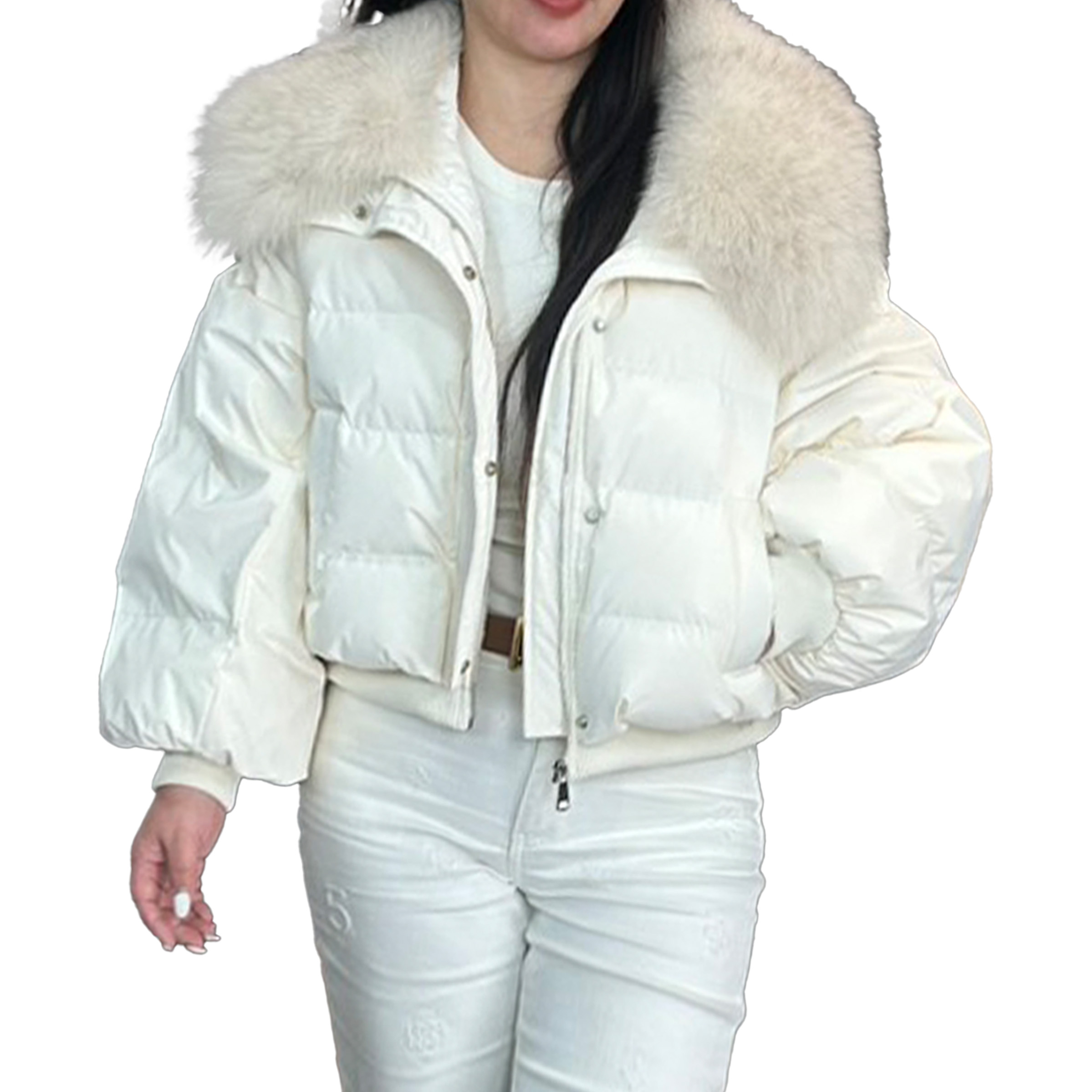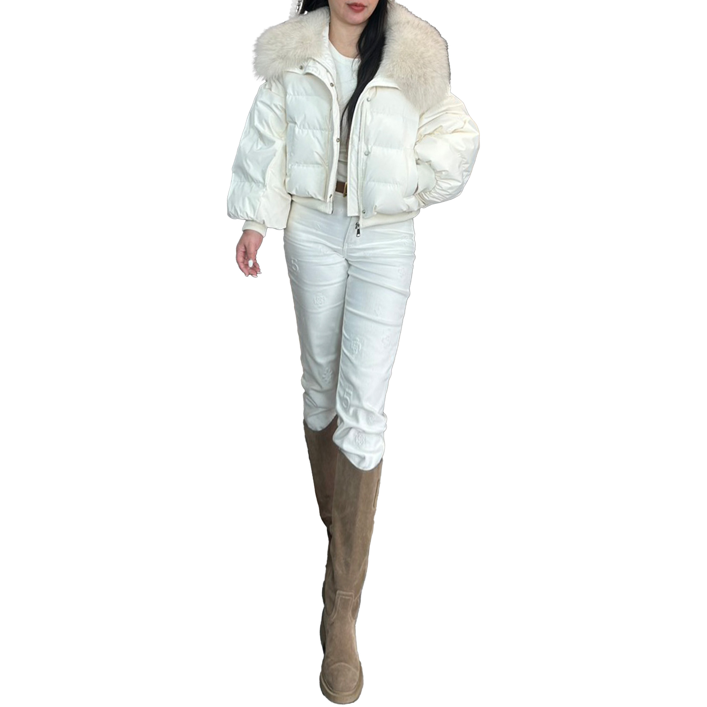 F061-真狐狸毛領可拆鵝絨外套【F落肩胸50長55】原價11800 福利價6980