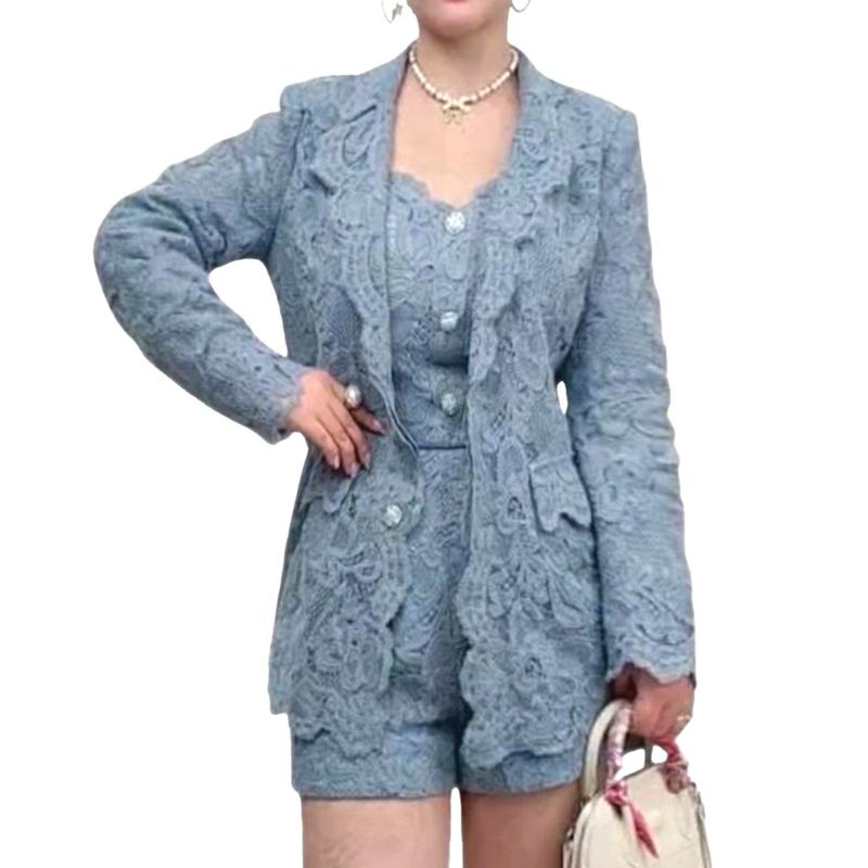 預購 MIU2878-超重工雙紗提花蕾絲短褲-米/藍-S/M/L【S腰34臀50長39】原價2680 商城2380 線上2280