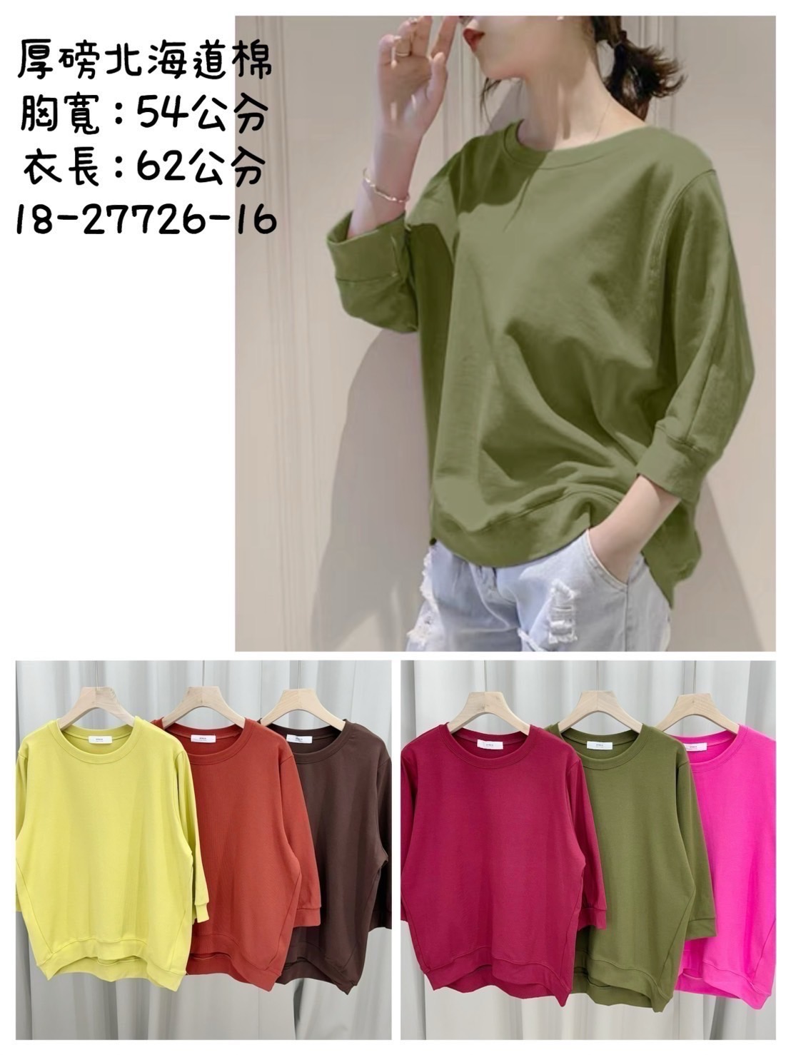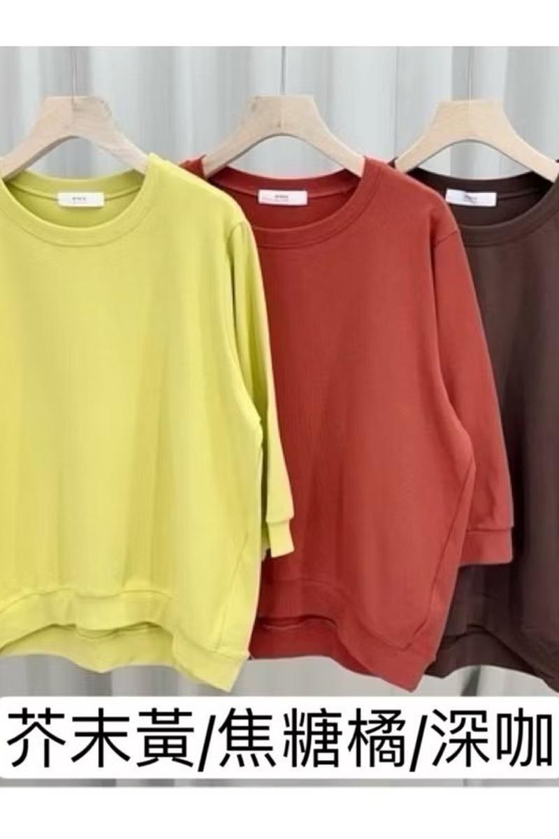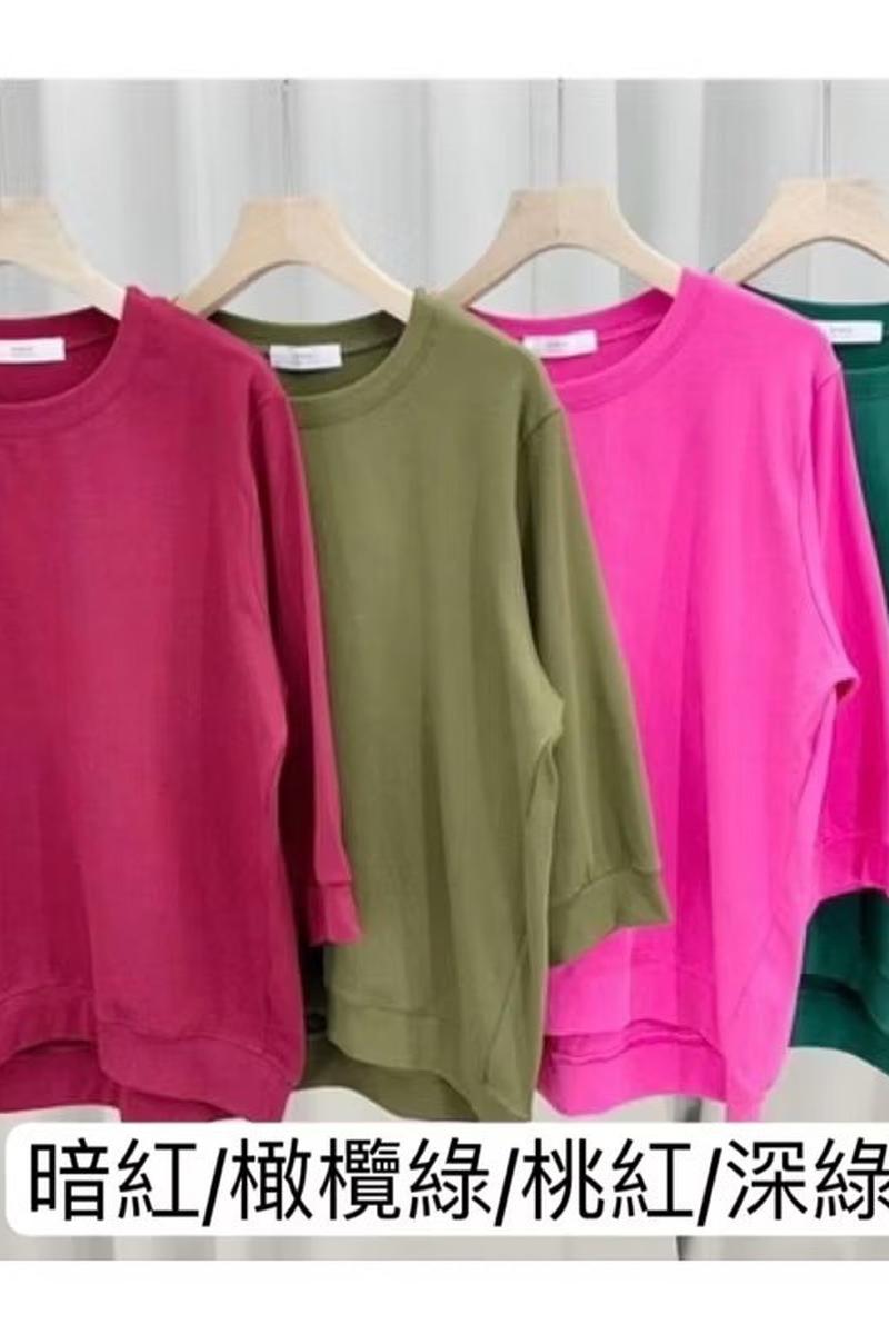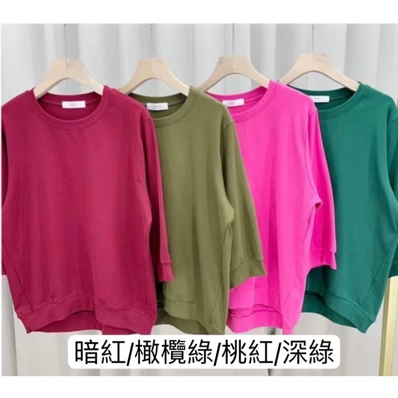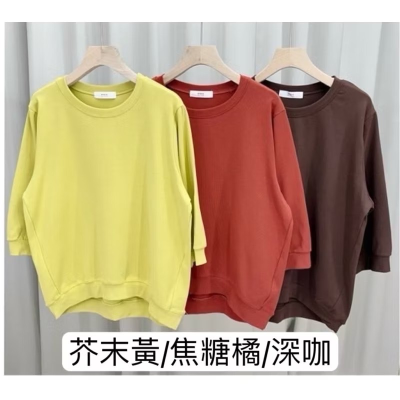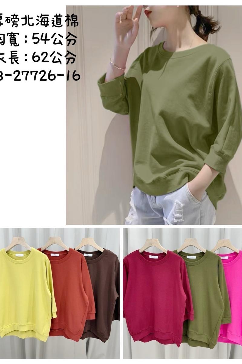 圓領素色七分袖上衣(北海道棉)