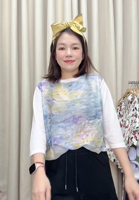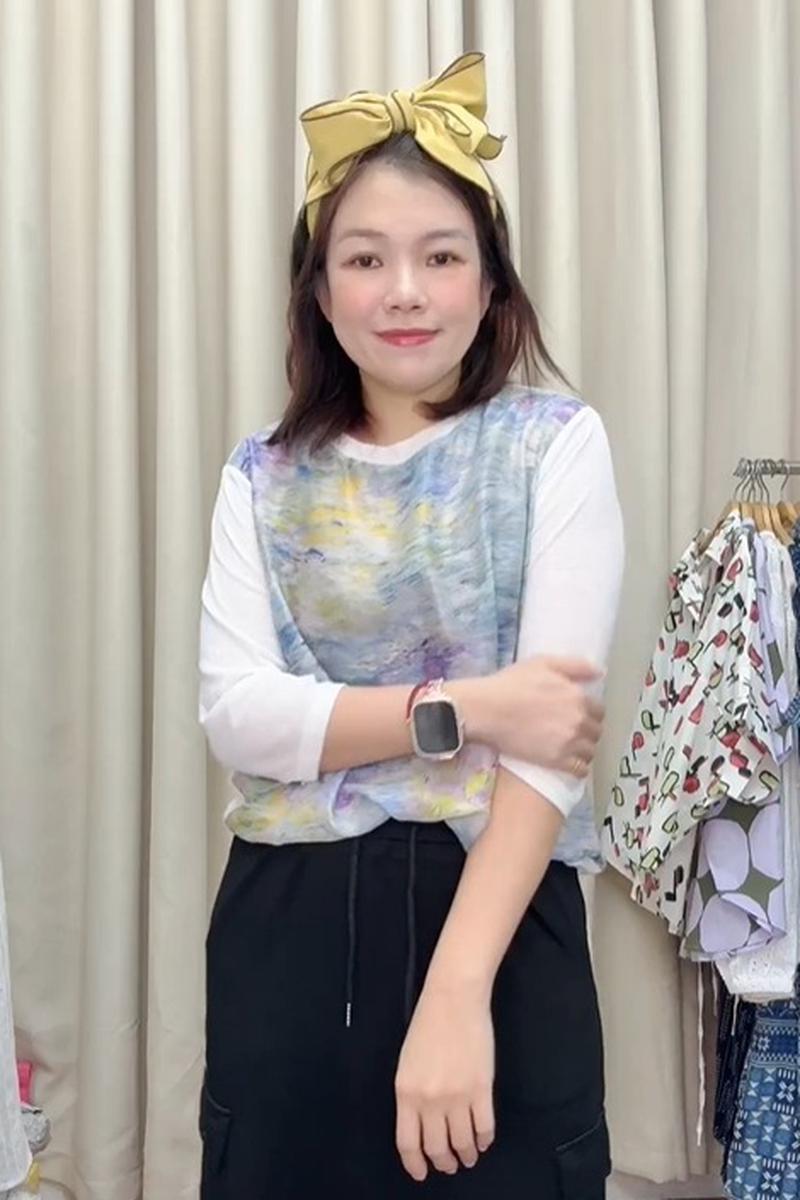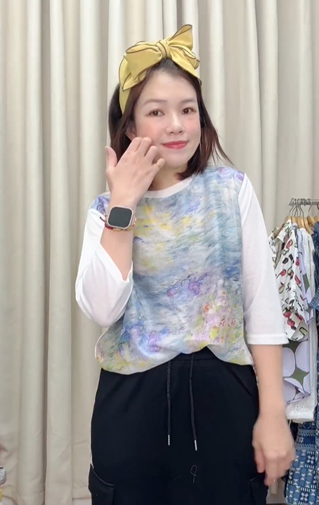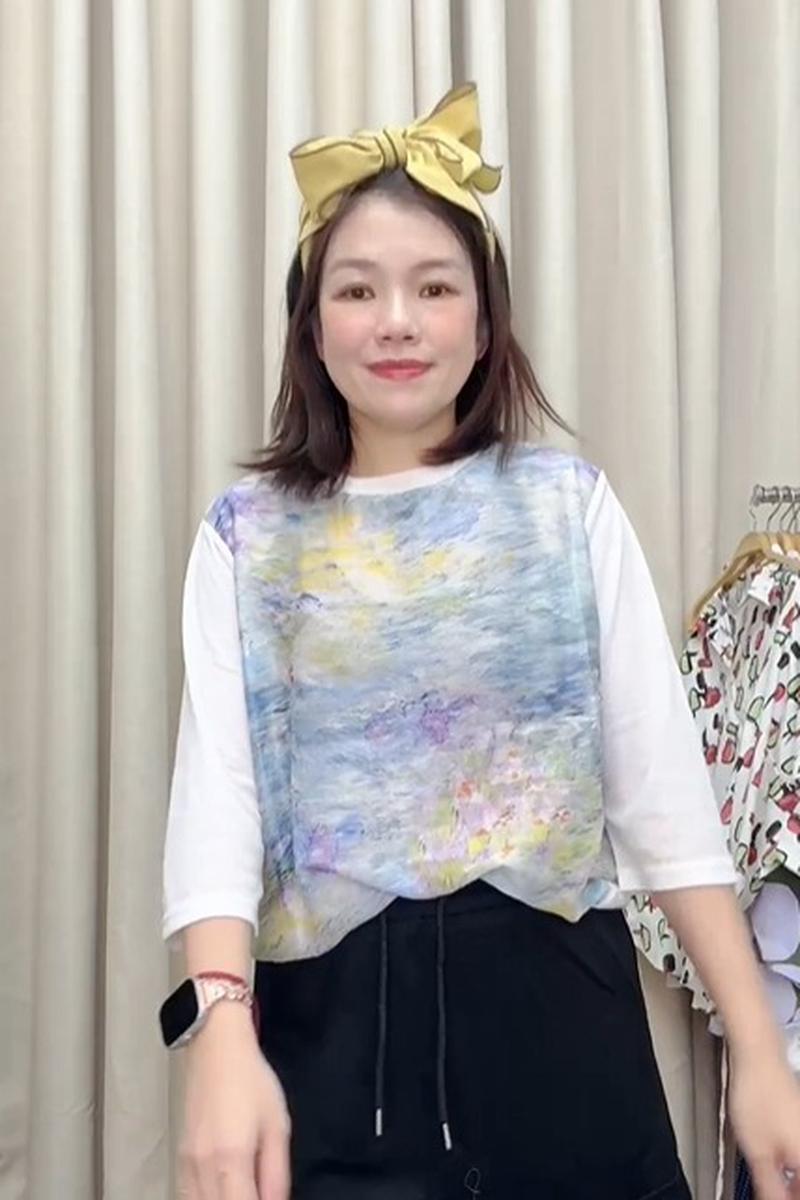 搭配簡約白色七分袖,修飾手臂線條更顯清新優雅。日常活動自在無束縛,時尚與舒適兼具💛讓穿搭也能成為藝術的一部分 🎨✔ 輕柔面料,親膚透氣✔ 抽象水彩印花,文青氣質滿分