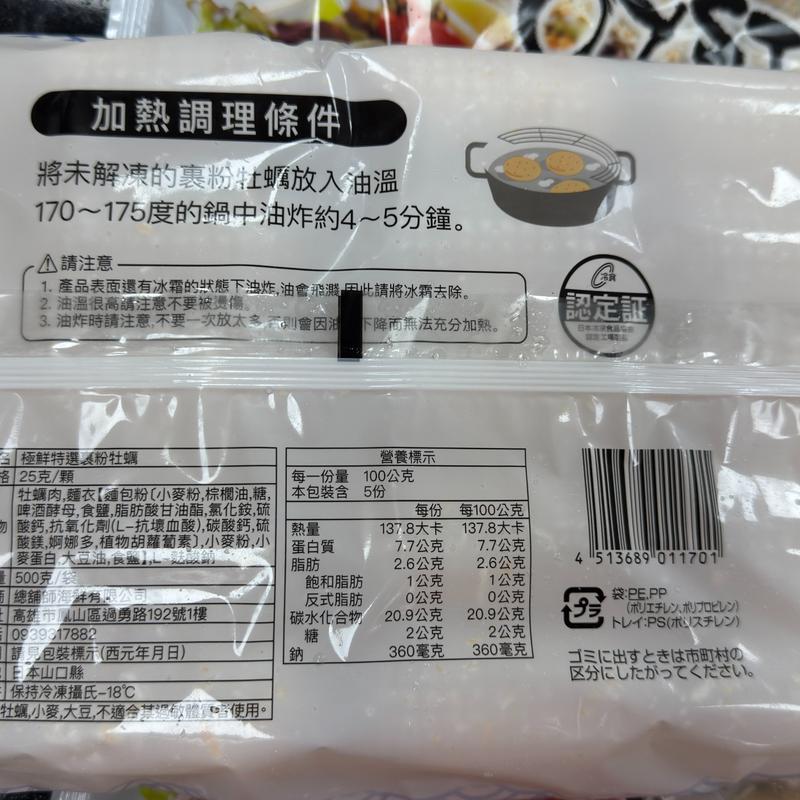 (推薦)日本山口縣 特選裹粉炸牡蠣 20顆裝 500g/袋 鮮甜好吃 加熱食用