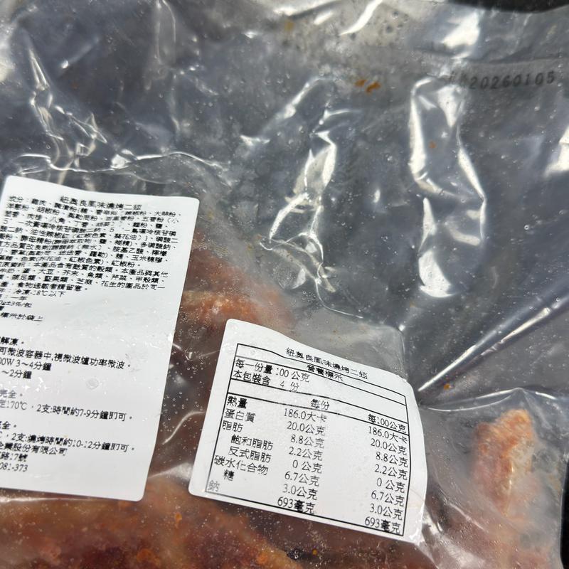 紐澳良風味燒烤雞翅-每包400g±3%-解凍後需加熱即食-保存至2026/01/05