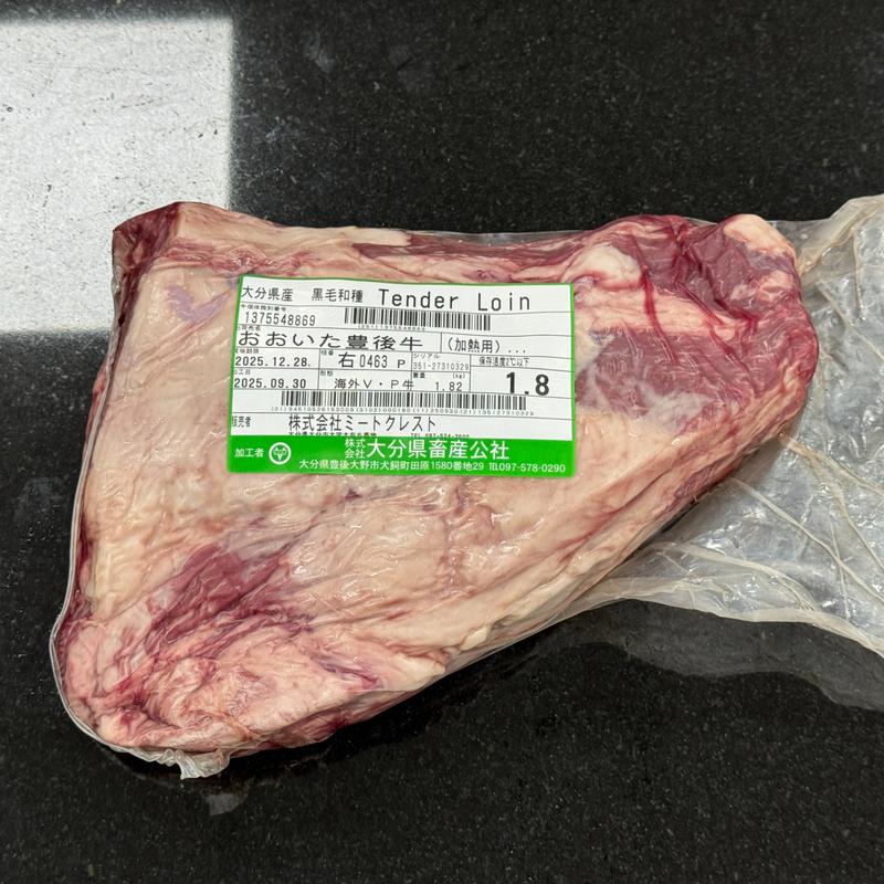 A5BMS10大分縣大分豐後牛#329菲力頭段1.8公斤,適合:牛排燒肉,賞味至:12/28