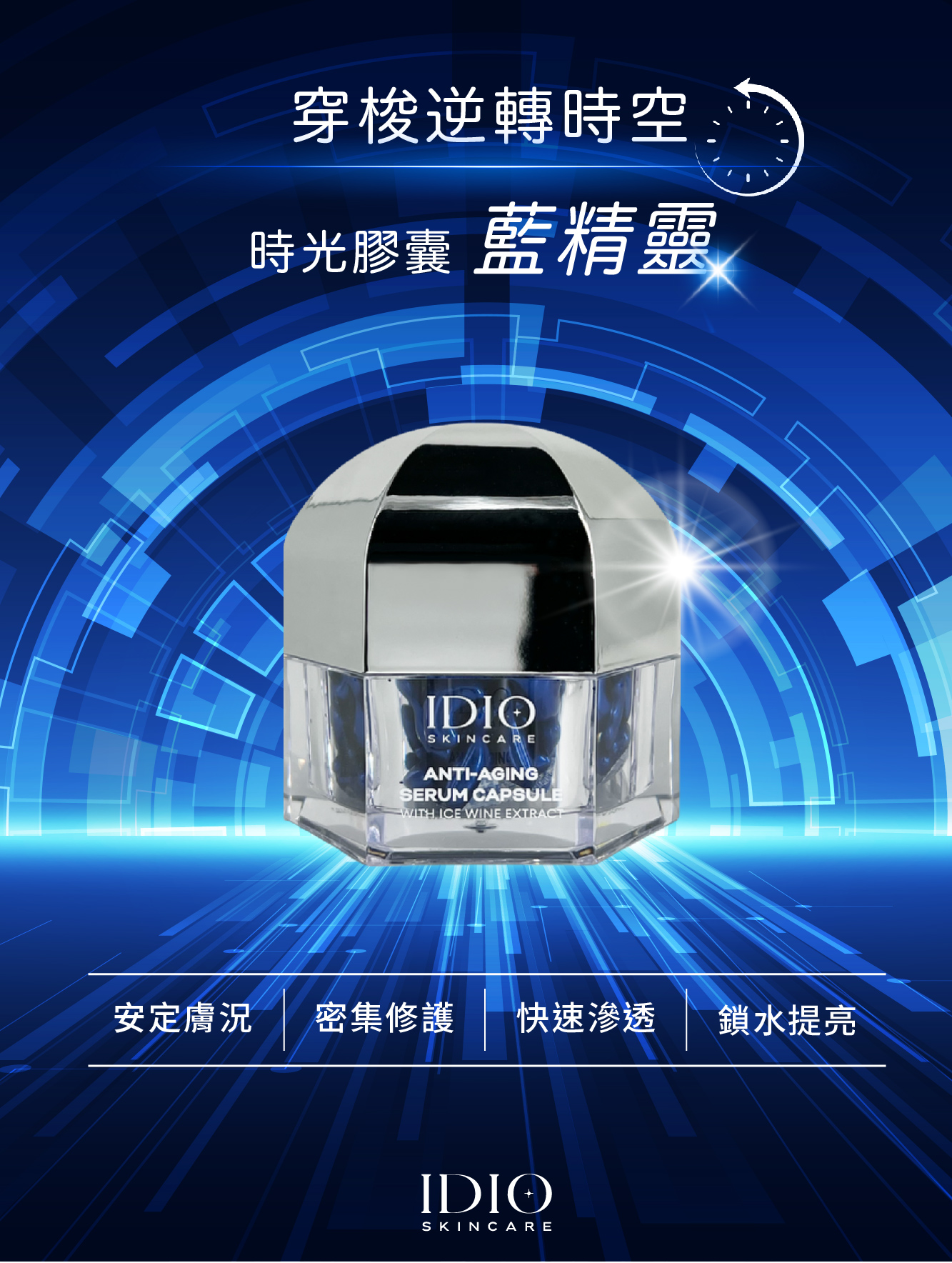 瞬效原生肌光膜x 3盒 + 極秒冰齡超進化膠囊 x 1 + IDIO PVC透明盥洗包(顏色隨機) x1