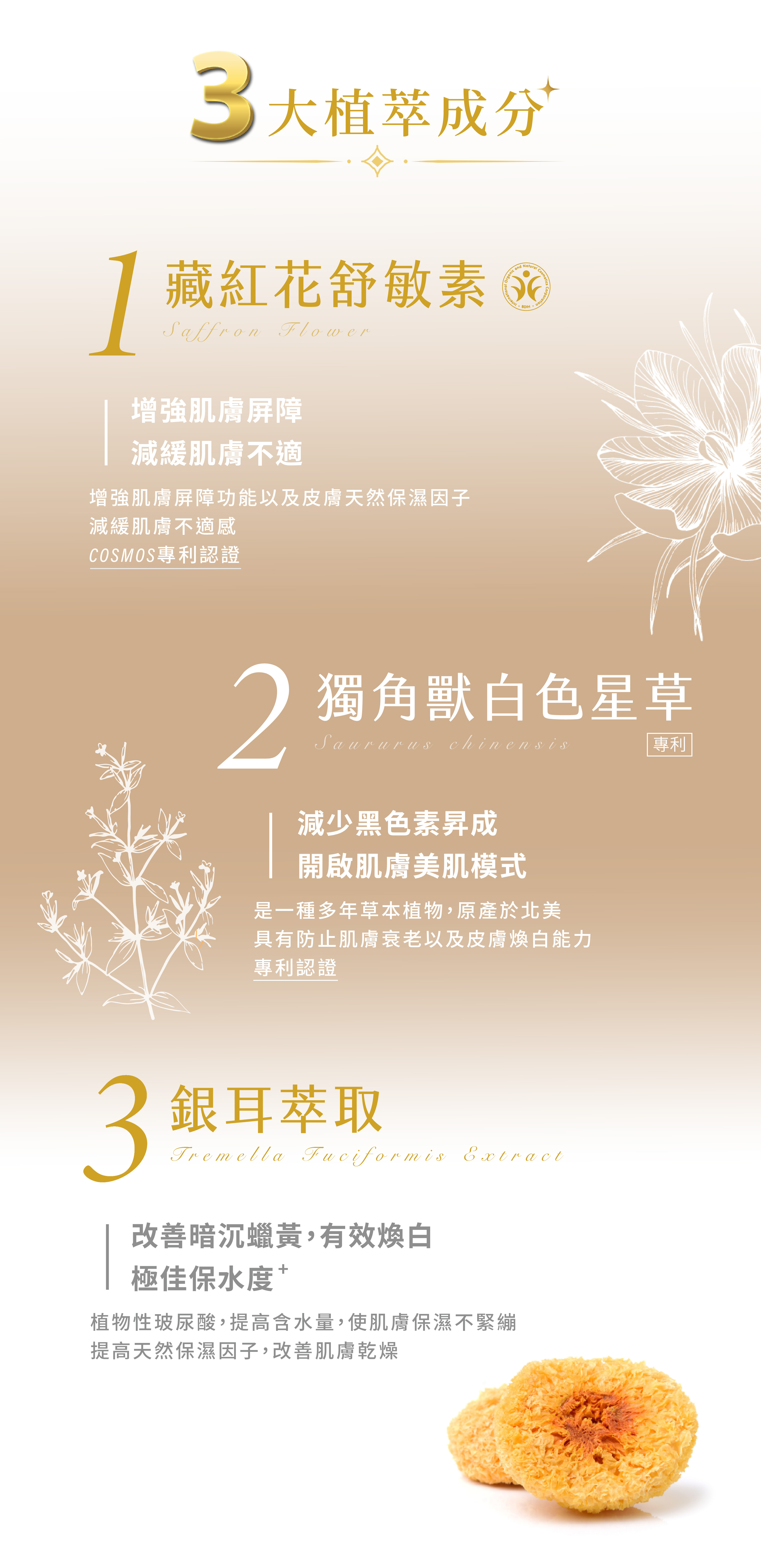 主要成分 | 冰酒精萃、類胎盤素、EGF、龍血素萃取、玻色因