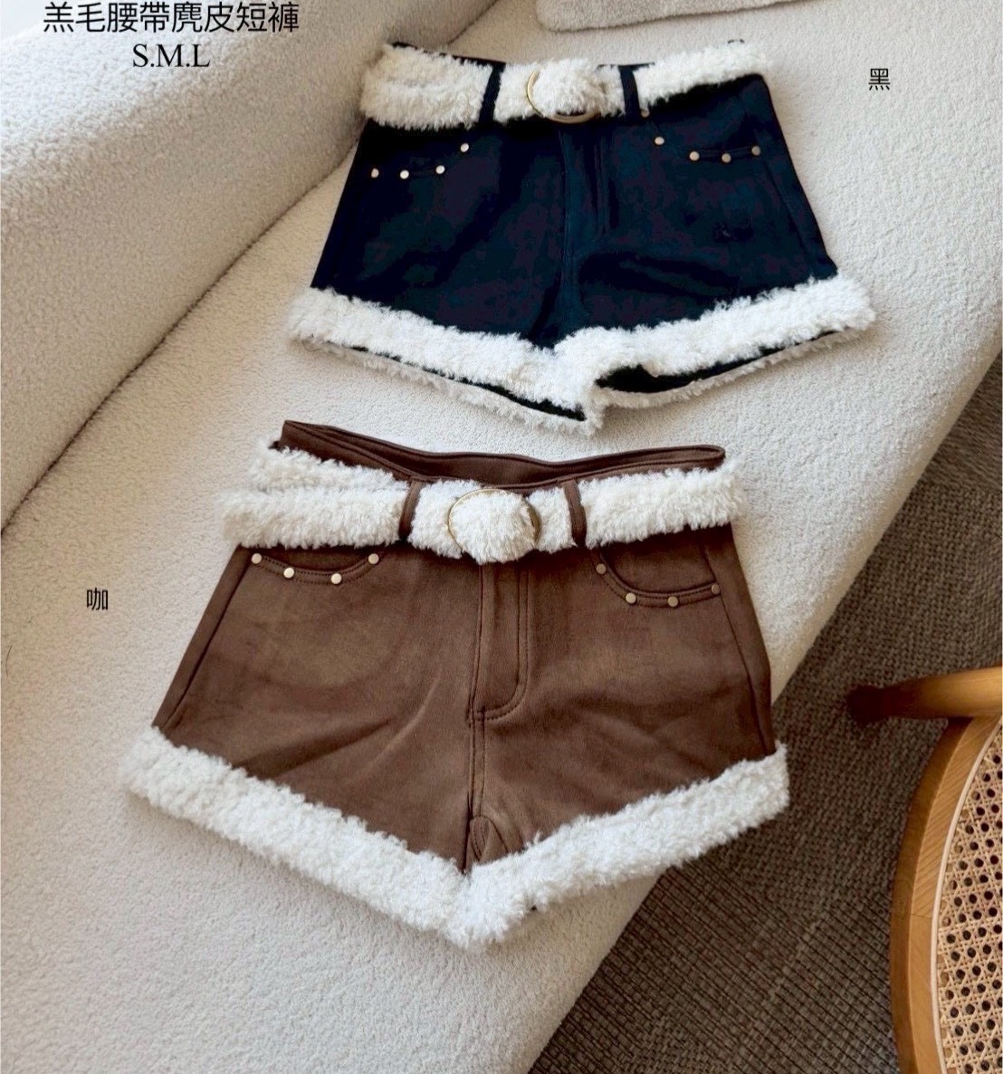 『JH』毛毛腰帶麂皮短褲