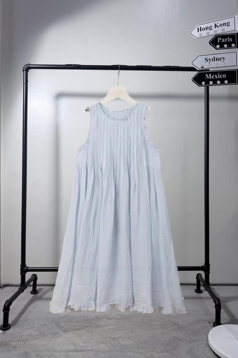 藍-第 099 標 (3/24K5-1)預購*B7CU276苧麻花邊背心洋裝